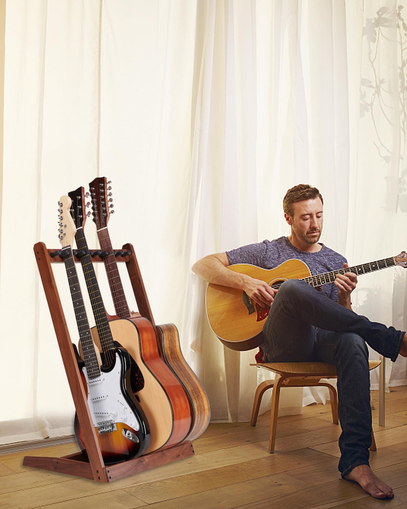 Guitar Stand For Multiple Guitars, Hardwood Multi Guitar Stand For 3 Acoustic Guitar, 5 Electric Or Bass, 5 Guitar Stand Rack For Men, Floor Guitar Rack Stand Display For Studio, Home