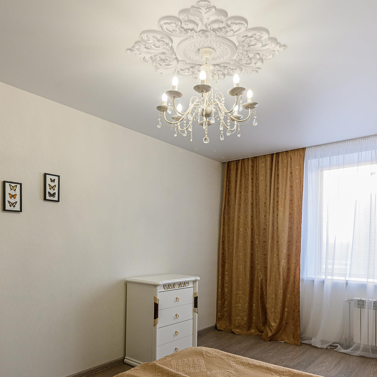 Features: Easy To Install: This Pure White European Style Ceiling Medallion For Light Fixtures And Ceiling Fans Offers Simplicity That Ensures Long Lasting Style, Goes With Any Decor And Adds Architectural Interest To Any Room Suitable For Most Chandeliers Dent Resistant And Waterproof, Thermoformed Pu Medallions Are Lightweight, Reliable And Easy To Install Easy To Match: The Classical And Net Design Of Chandelier Medallions Are Suitable For Decorating Most Chandeliers, Showing Your Life Attitude, And You Could Enjoy The Fun Of Decoration. Moreover, Except For Homes, They Are Suitable For Hotels, Offices And More. Specifications: Material: Pu Color: White Size: Od: About 28 Inches/ 70 Cm Package Includes: 1 X Ceiling Medallions Notes: Manual Measurement, Please Allow Slight Errors On Size. The Color May Exist A Slight Difference Due To Different Screen Displays.