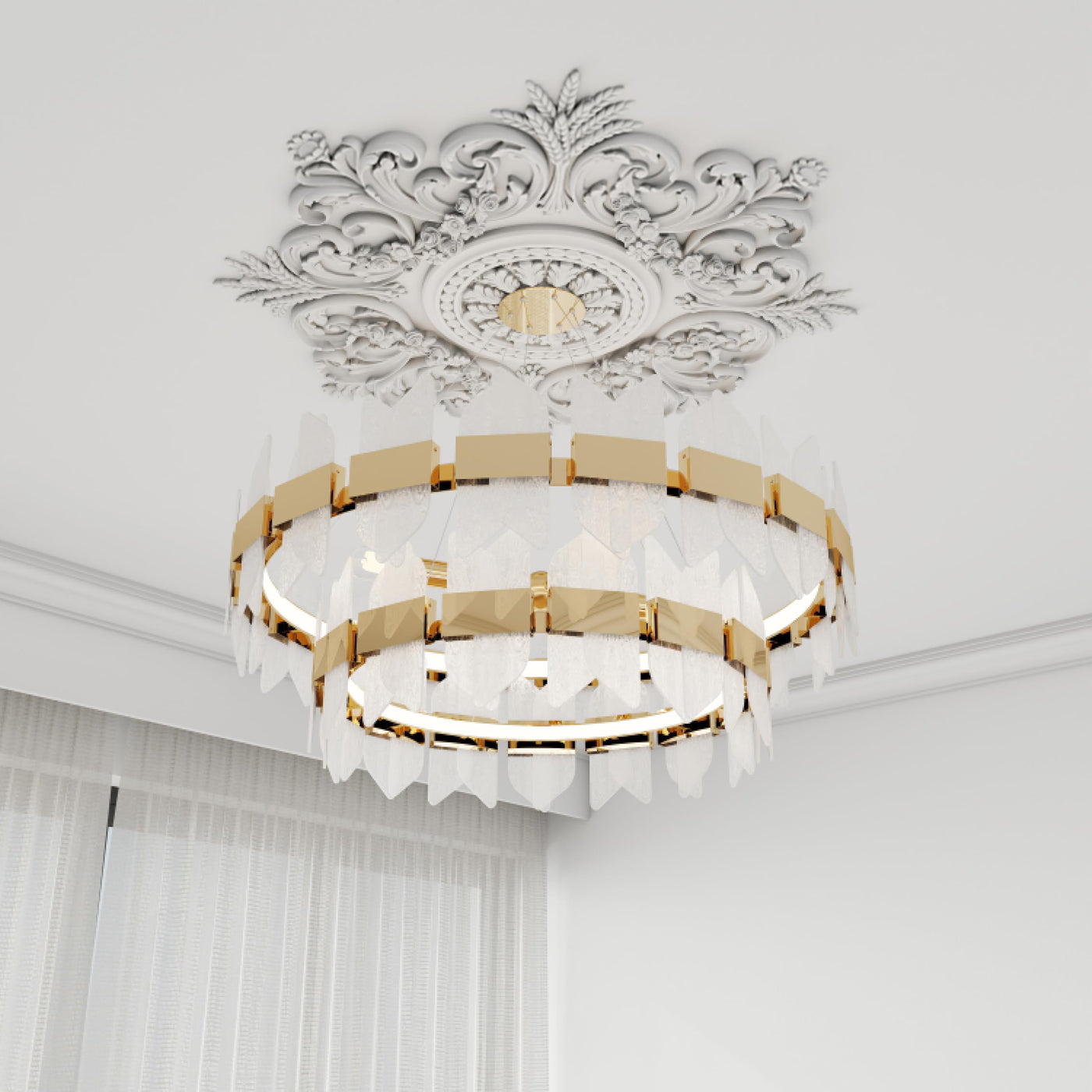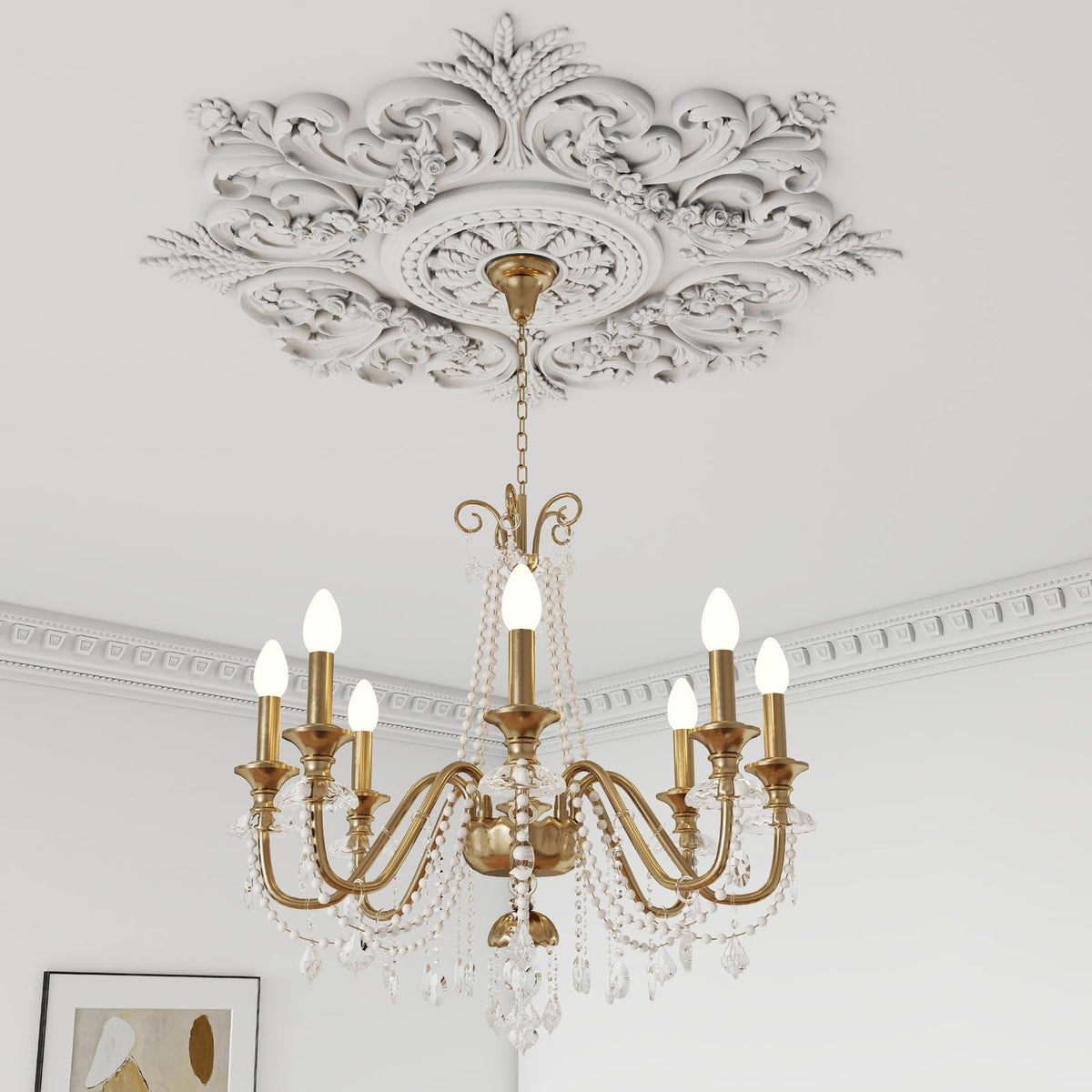 Nuanchu Large Pu Ceiling Medallion Combination Decorative French Style Chandelier Base Ceiling Medallion For Light Fixtures Vict