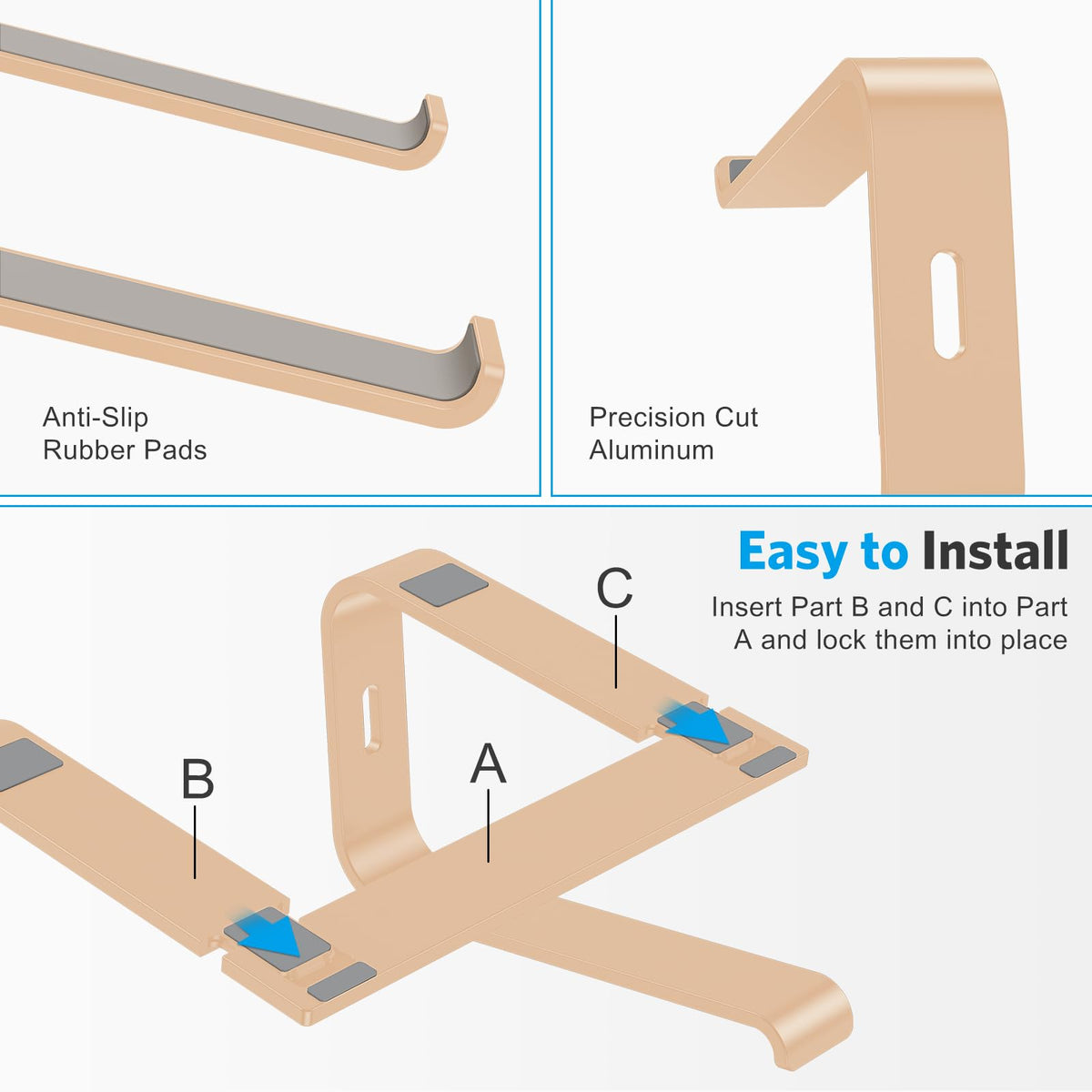 Omoton Laptop Stand, Detachable Laptop Mount, Aluminum Laptop Holder Stand For Desk, Compatible With Macbook Air/Pro, Dell, Hp And All Laptops (11 16 Inch), Gold