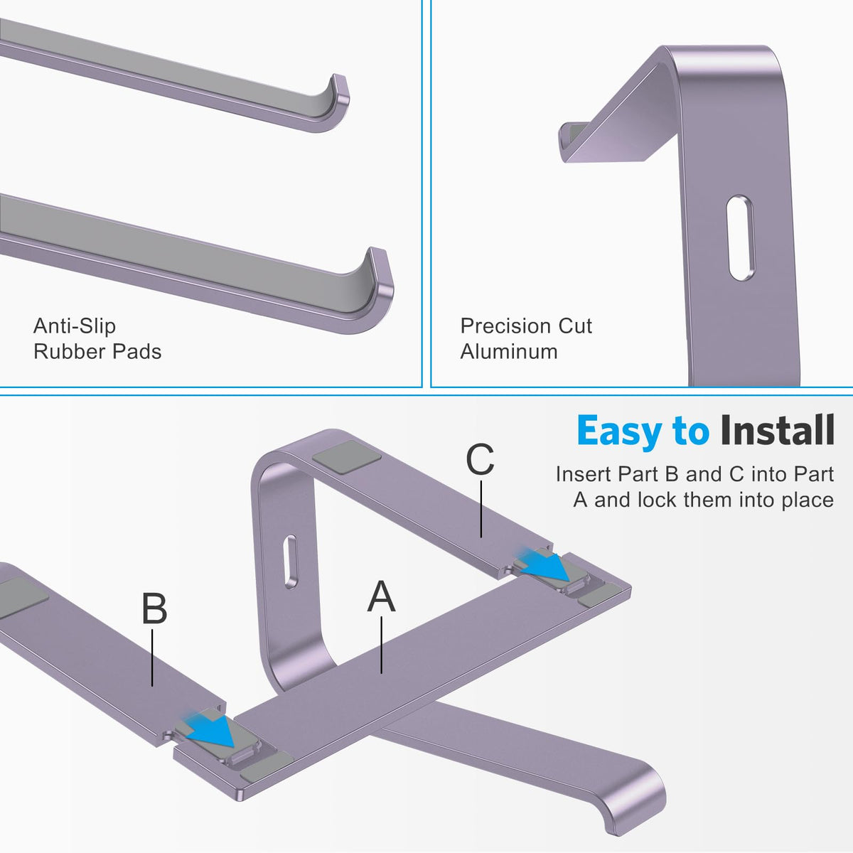 ?Wide Compatibility? This Laptop Stand Is Well Compatible With All Laptops From 10 To15.6-Inch, Such As Macbook 12 Inch/ 13 Inch, Macbook Air 13 Inch, Macbook Pro 13 Inch / 15Inch (2020/ 2019/ 2018/ 2017/ 2016), Microsoft Surface, Thinkpad, Dell, Hp, Chromebook, And Other Notebooks. | ?Sturdy & Reliable?The Laptop Stand Is Made Of Aluminum Alloy, Sturdy Enough To Hold Up To 11Lbs (5Kg) Of Weight. The Soft Rubber Pads Are Designed To Protect Your Laptop From Scratches Or Slipping. | ?Detachable & Portablae? The Laptop Holder Is Compact, Lightweighted, And Easy To Install Or Disassemble. You Can Take It Apart And Carry It With You On The Way To The Library. | ?Heat Dissipation? This Laptop Riser Allows Free Airflow Underneath, Which Helps To Dissipate The Heat Of Your Laptop. Moreover, The Aluminum Alloy Body Helps To Absorb And Diffuse Heat. | ?Ergonomic Design? This Laptop Stand Can Helpful To Relieve Neck And Shoulder Pain By Elevating Your Laptop To Eye Level.