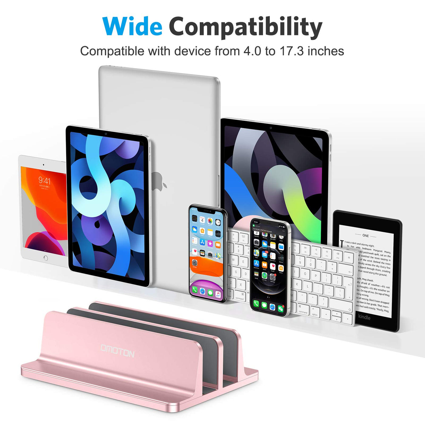 Omoton [Updated Dock Version Vertical Laptop Stand, Double Desktop Stand Holder With Adjustable Dock (Up To 17.3 Inch), Fits All Macbook/Surface/Samsung/Hp/Dell/Chrome Book (Rose Gold)