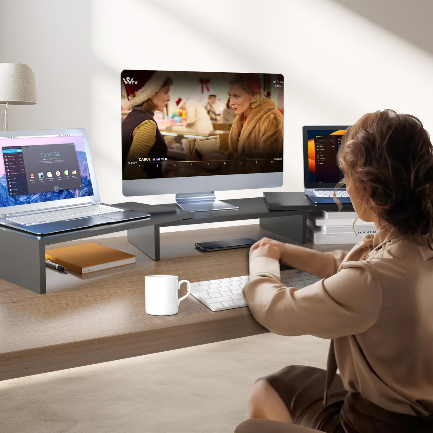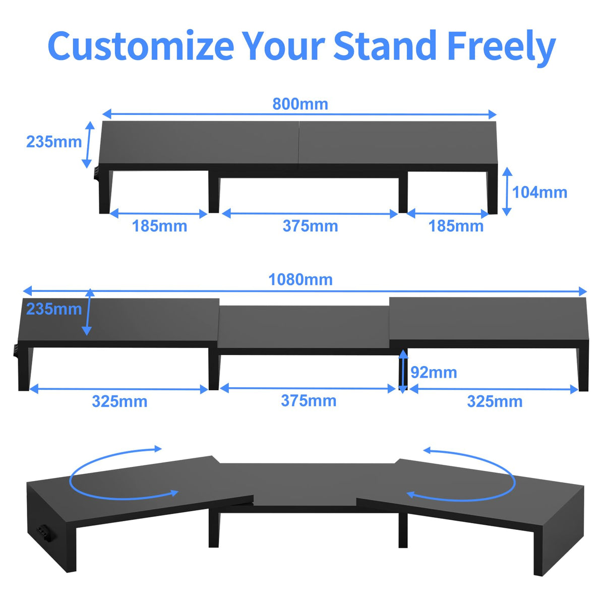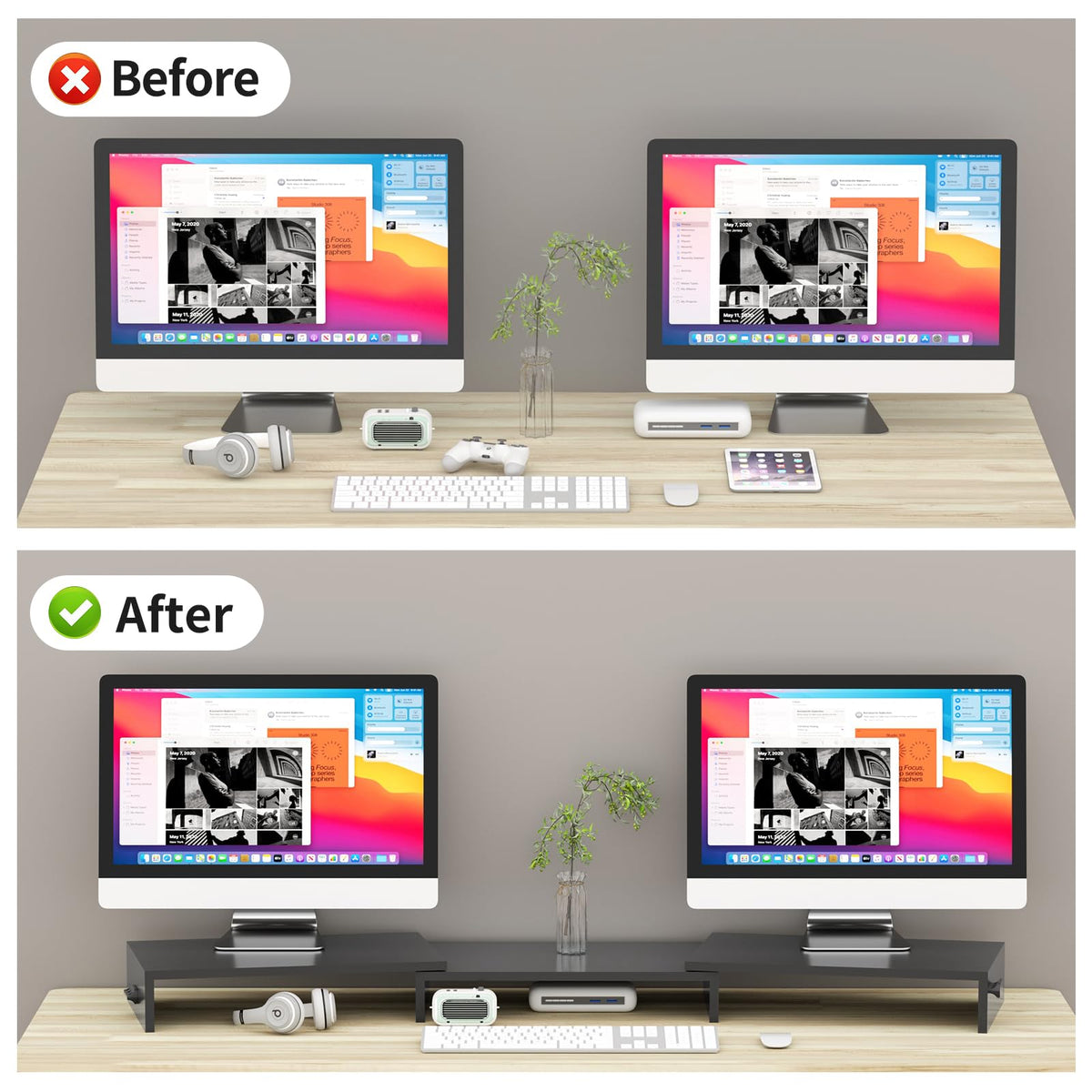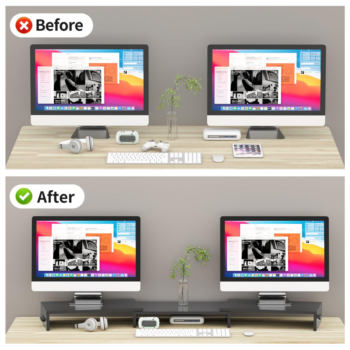 Pholiten Dual Monitor Stand Riser For 2 Monitors,Desktop Monitor Stand With Adjustable Length And Swivel Angles, Extra Long Mult