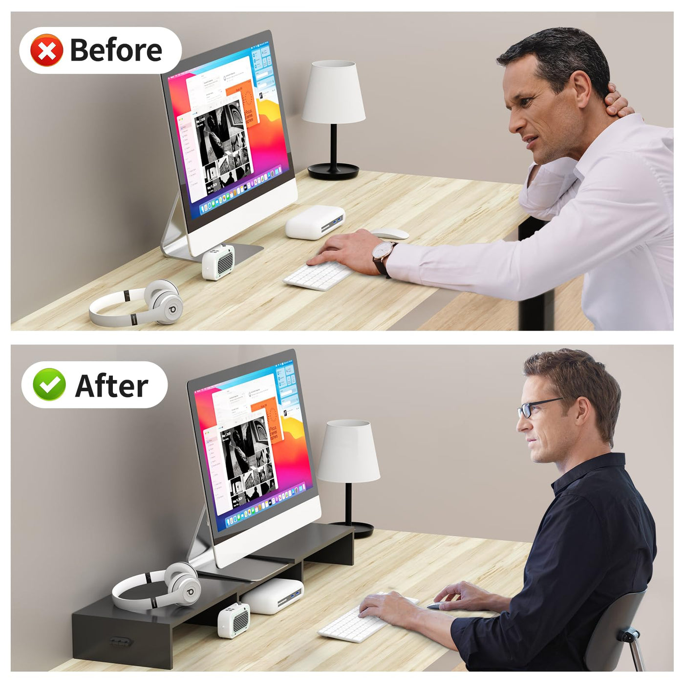 Ventilated Metal Desktop Stand Ergonomic Design Helps To Relieve Eyestrain, Back &Amp; Neck Pain And General Tiredness. The 3-Level Height Adjustable Monitor Stand Can Raise Your Computer Screen To Eye Level, Relieve Neck, Back And Shoulder Pressure, Keep Your Screen At A Comfortable Eye Level, Effectively Improve Posture, Relieve Eyestrain And Back And Neck Pain. Saves Space In Your Workspace And Helps You Get Rid Of Cluttered Desktops. Non-Slip Feet Stay Stable And Protect Your Furniture From Damage. The Platform Of This Desk Monitor Stand Is Built With Mesh Ventilated Holes That Increase Air Flow Going Toward Your Device And Keeps Your Laptop Or Monitor Cooler And Helps Prevent Overheating. This Monitor Stand With Storage Is 14.5 X 9.25 Inches (Length X Width), Which Allows The Monitor To Be Set To 3 Adjustable Height Levels, Reducing The Strain On The User'S Eyes And Spine. Laptop Stand For Desk With Storage Also Helps In Optimizing The Workspace By Freeing Up Space. The Most Popular Tool For Raising The Level Of The Screen Is The Desktop Monitor Riser. It'S A Great Combination Of Simplicity And Functionality That Are Important For Efficient Performance At Work. This Monitor Shelf Is Also Suitable Not Only For A Computer Monitor, But Also For Laptop, Printer, Player And Other Devices. Its Main Characteristic Is Simplicity. If All You Need Is A Small Mount, This Is The Perfect Option For You. This Monitor Riser With Storage Is Suitable For Most Laptops, Printers, Game Consoles, Televisions And Other Devices.