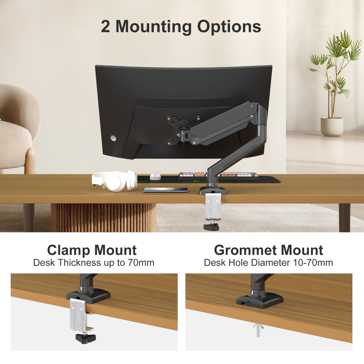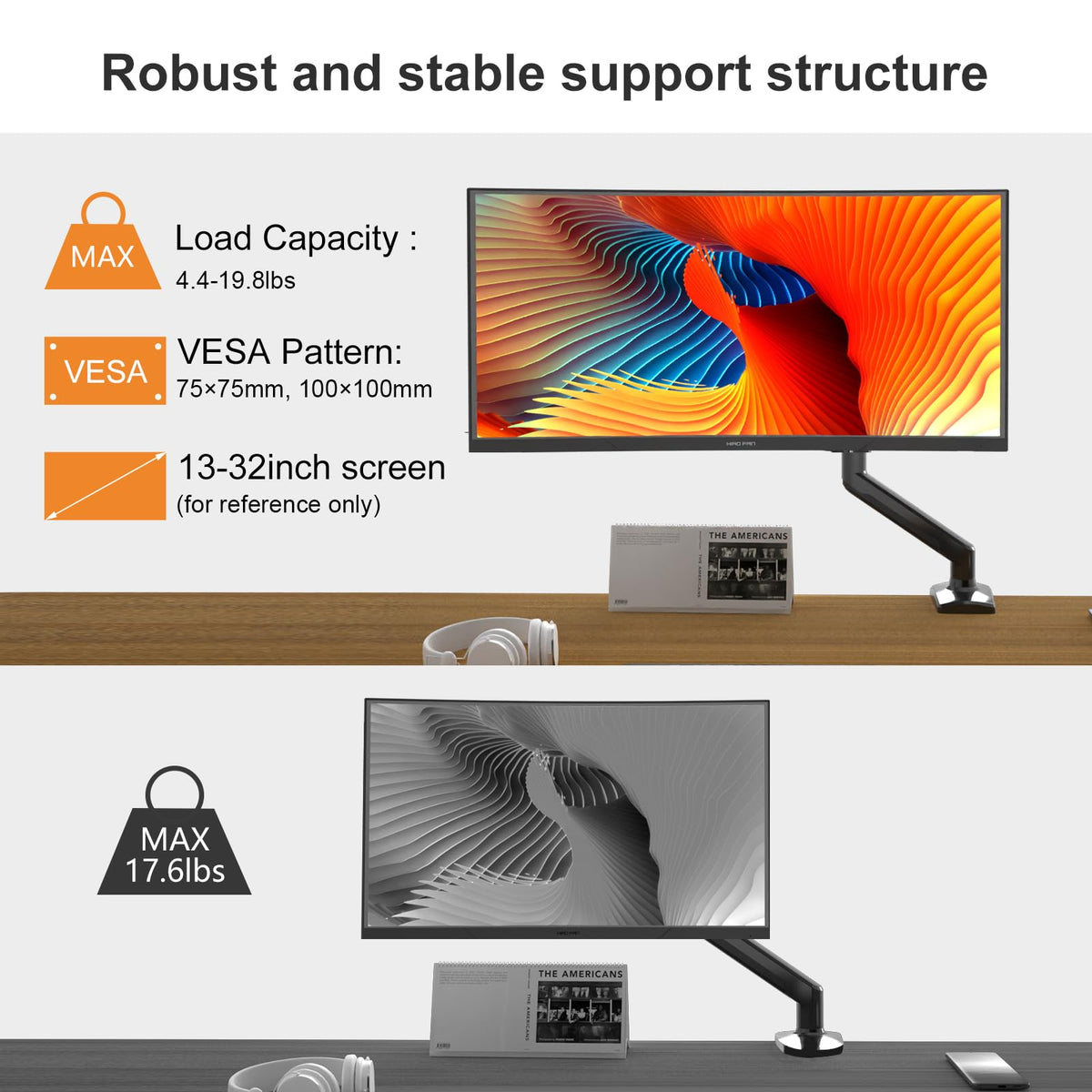 Pholiten Single Monitor Arm Fits 13 32 Inch,4.4 19.8Lbs Monitor, Fully Adjustable Gas Spring Monitor Arm, Computer Monitor Stand