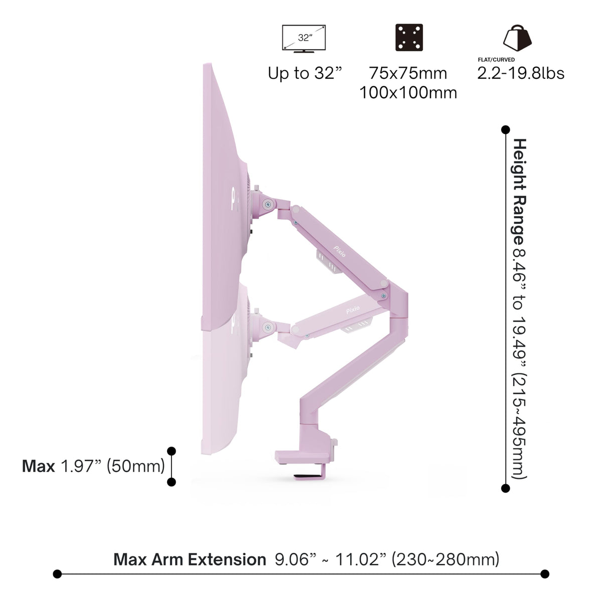 Pixio Ps1S Wave Pink Single Monitor Arm Stand Desk Mount Fits Up To 32 Inches Monitors And Up To 19.8Lbs. Vesa Compatibility And Integrated Cable Management