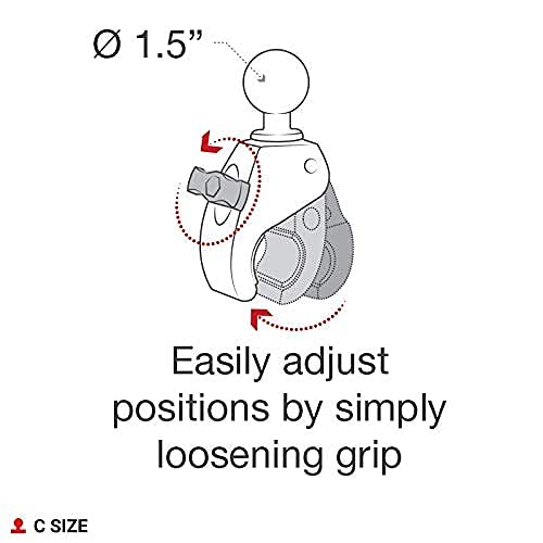Medium Version Designed To Quickly Clamp To Round, Square, And Odd-Shaped Rails And Bars Ranging From 1 To 1.875 In Outer Diameter; Rubber Pads Provide Stable Gripping And Protection Of Mounting Surface | Ideal Mounting Base For Phones, Tablets, Cameras, Rod Holders, And Much More; Includes 1.5 C Size Rubber Ball For Attachment To Ram Double Socket Arms | Made Of High-Strength Composite And Stainless Steel Hardware For Durability And Reliability In The Most Demanding Environments | Backed By A Lifetime Warranty