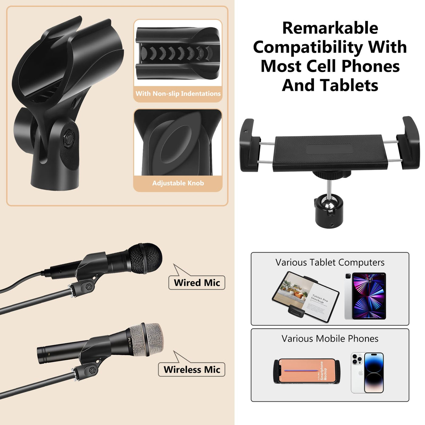 Ramzi Mic Stand,6 In 1 Microphone Stand Floor Boom Mic Stand, Support Boom Gooseneck Mic Clips Tablet Phone Holder Any Combinati