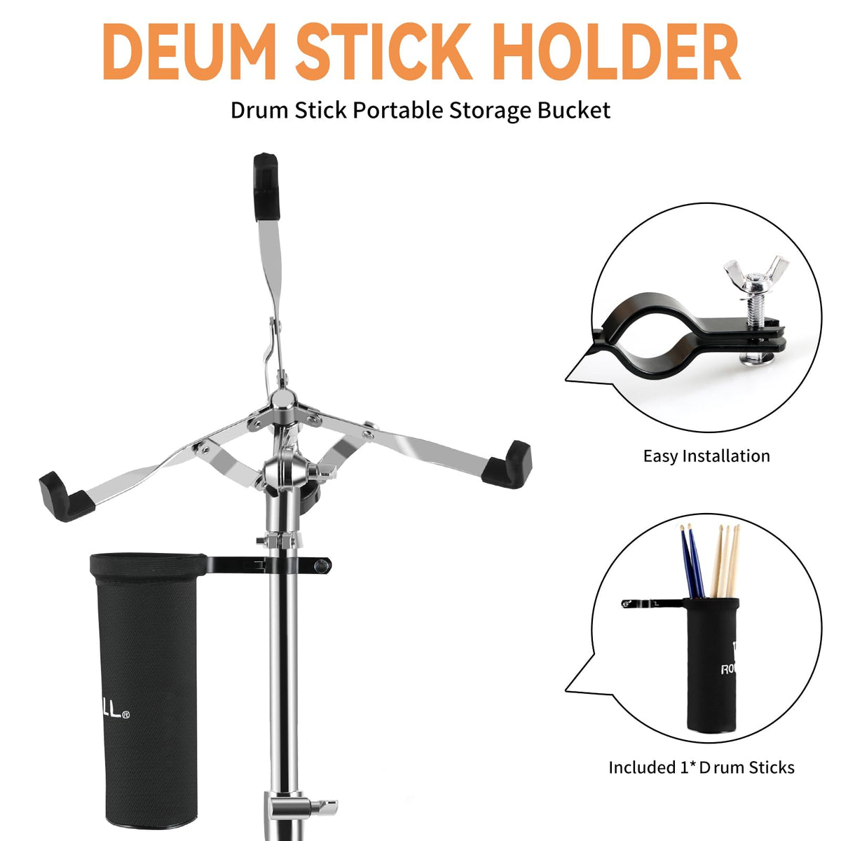 Rowell Snare Drum Stand Snare Stand With Drum Sticks Double Braced Snare Stand Fit For 10 To 14 Inch Snare Drum And Practice Pad