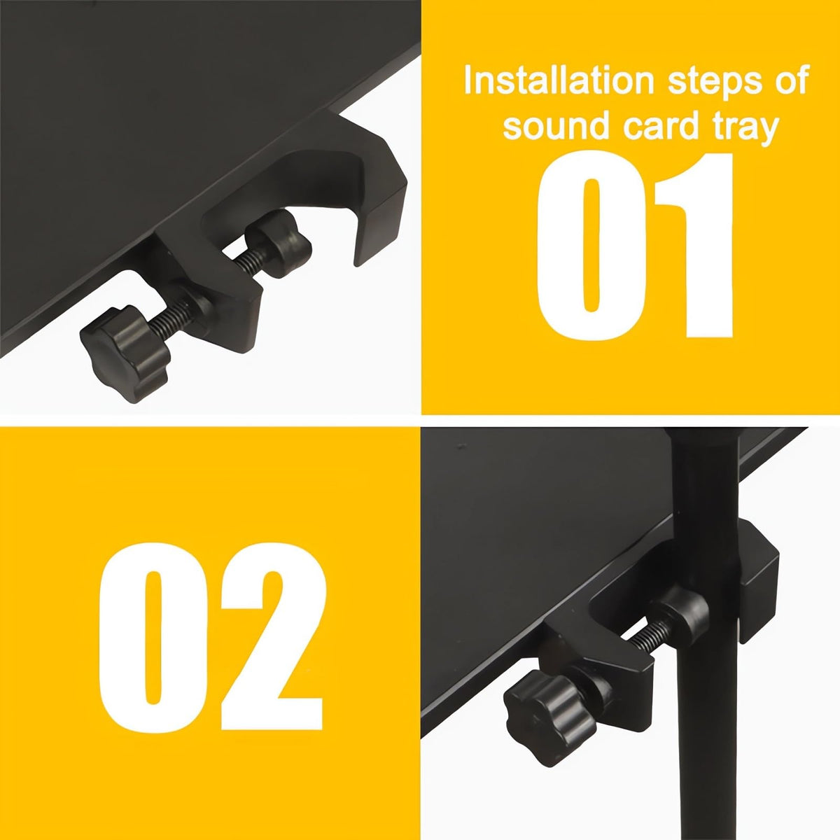 Rtnlit Microphone Stand Tray, Clamp On Firm Rack Tray Holder With 4.5 Pound Weight Capacity Adjustable Mic Stand Shelf For Live