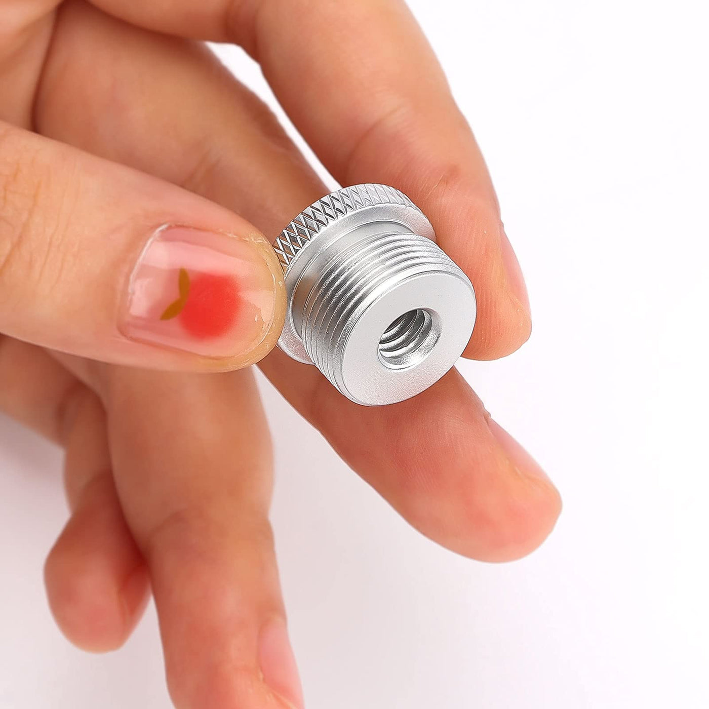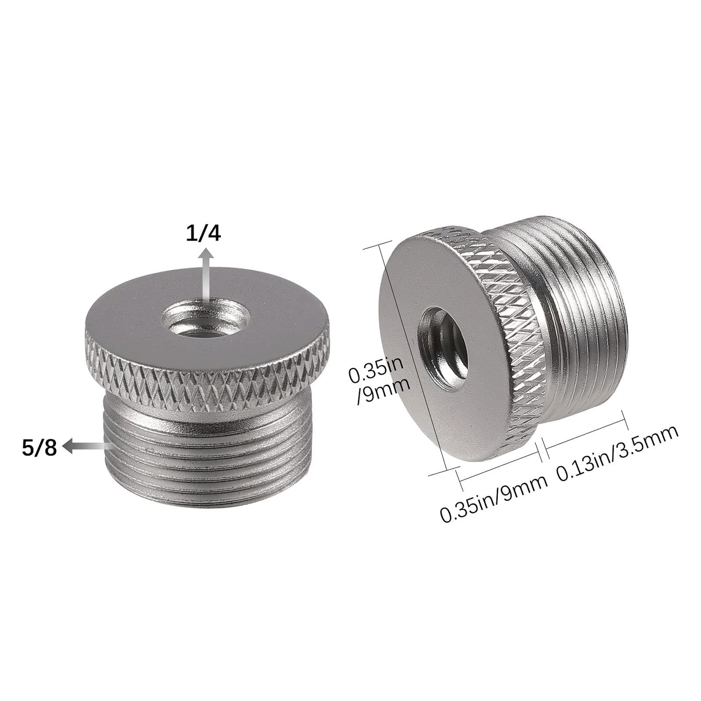 Specification: Color: Silver Material: Aluminum Alloy Weight: 10G/0.35Oz Product Size: Outer Diameter:18Mm/0.7 Inch, Total Length:13Mm/0.5 Inch Package Size: 7X5X1.8Cm/2.8X1.97X0.7Inch Package Details: 2 X Mic Stand Adapters Note: Due To Manual Measurement, The Size And Weight May Have A Certain Error. Due To The Difference Between Different Monitors, There May Be A Slight Color Difference Existed.