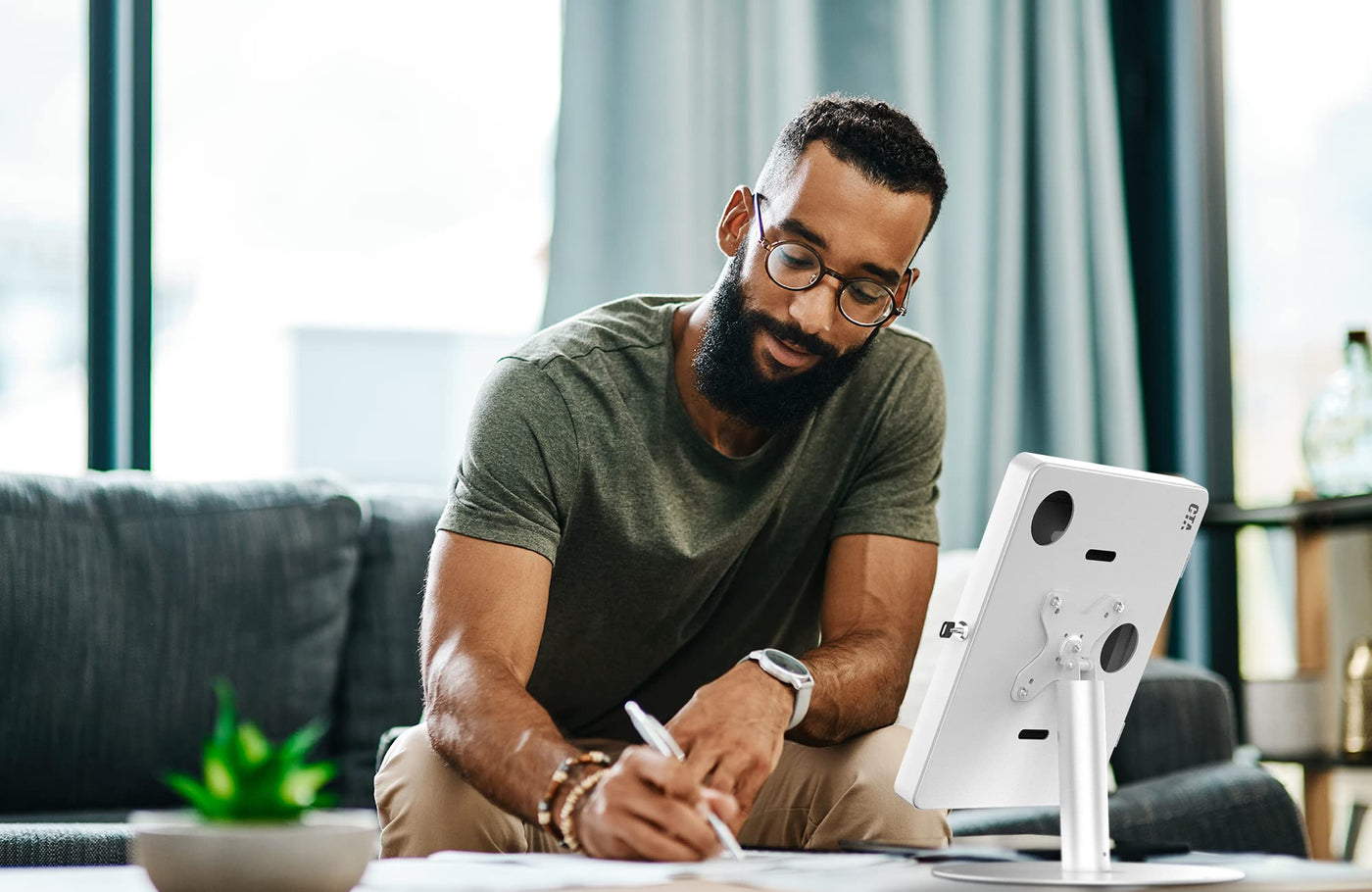 Q: What materials are used in the construction of the kiosk?A: The Security Tablet Kiosk is constructed from heavy-duty aluminum for the exterior and features soft rubber grips on the interior. This design not only enhances durability but also ensures that your device remains scratch-free.