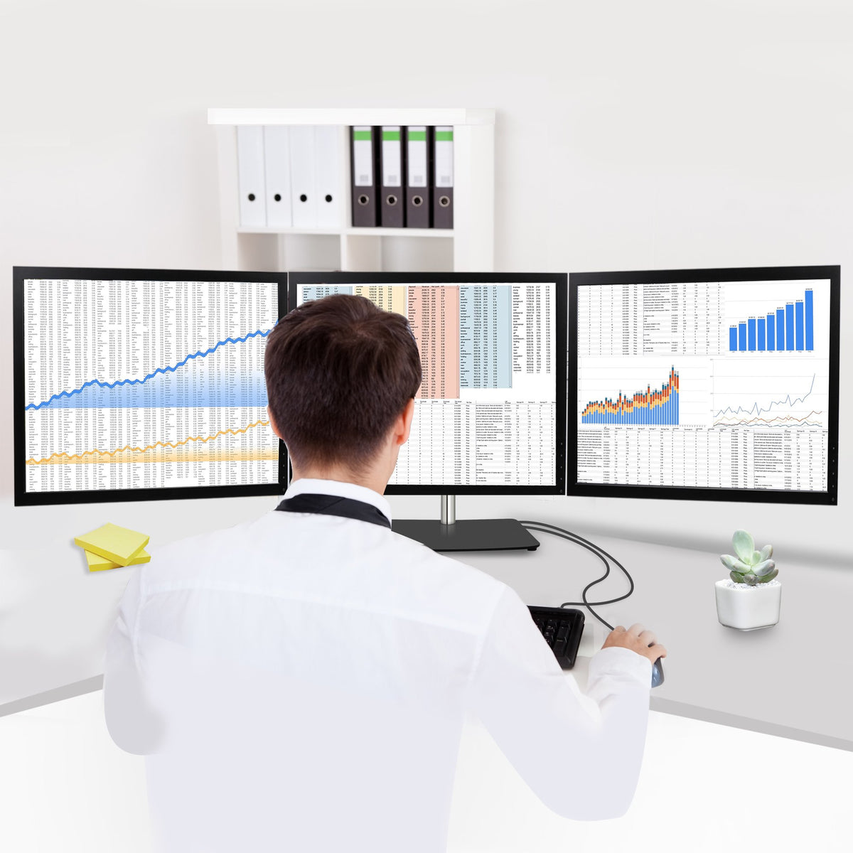 Siigs Premium Easy-Adjust Triple Monitor Desk Stand - 13 To 27 Enables You To Mount Three Monitors Side-By-Side To Instantly Create An Ergonomic Working Environment. The Premium Quality Aluminum Mounting Arms Are Built To Last And Easily Support Three Monitors From 13 To 27 With Weight Up To 17.6 Lbs Each. Watch Video For Demo Of All Adjustments! Unique Mounting Bracket With Detachable Vesa Plate Is Smartly Designed To Simplify The Installation Procedure And Makes Mounting The Monitor To Your Desirable Position Quick And Simple To Manage. Durable Hinges Are Integrated To Allow The Side Monitors To Be Curved-In For Maximum Viewing Comfort. Heavy Duty Counter-Balanced Base Ensures Stability And Allows Easy Re-Positioning Around The Desktop. This Free-Standing, Easy-To-Use Triple Monitor Desk Stand Is An Ideal Workspace Organizing Tool To Provide Ergonomic Comfort, Free Up Desk Space And Increase Productivity. Specifications - Screen Size: 13 To 27 (Measured Diagonally) - Load Capacity: Up To 17.6 Lbs (Each Monitor) - Vesa Mounting Pattern: 75X75Mm, 100X100Mm - Monitor Fine Tune Height Adjustment: +/- 20Mm - Tilt Adjustment: +/- 15 - Rotation: 360 (For Portrait Or Landscape Orientation) - Height Adjustment: Up To 15 - Product Dimensions: 61.18 (W) X 4.4 (H) X 20.55 (D) - Product Weight: 17.84 Lbs - Certifications/Standards: Rohs - Country Of Origin: China Package Contents - Easy-Adjust Triple Monitor Desk Stand - 13 To 27 - Installation Kit - Installation Instructions