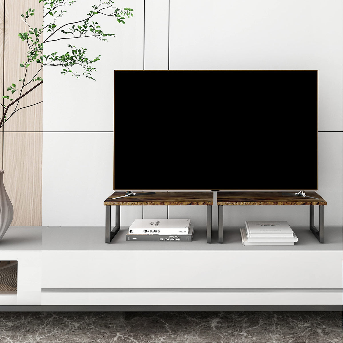 Simple Trending 2 Pack Monitor Stand Riser, Wood Desk Storage Organizer For Office Laptop, Computer, Antique Brown