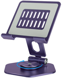 Sojuner Tablet Stand Holder For Desk, Swivel Ipad Stand With 360 Rotating Base, Aluminum Foldable Desktop Stand Holder Compatibl