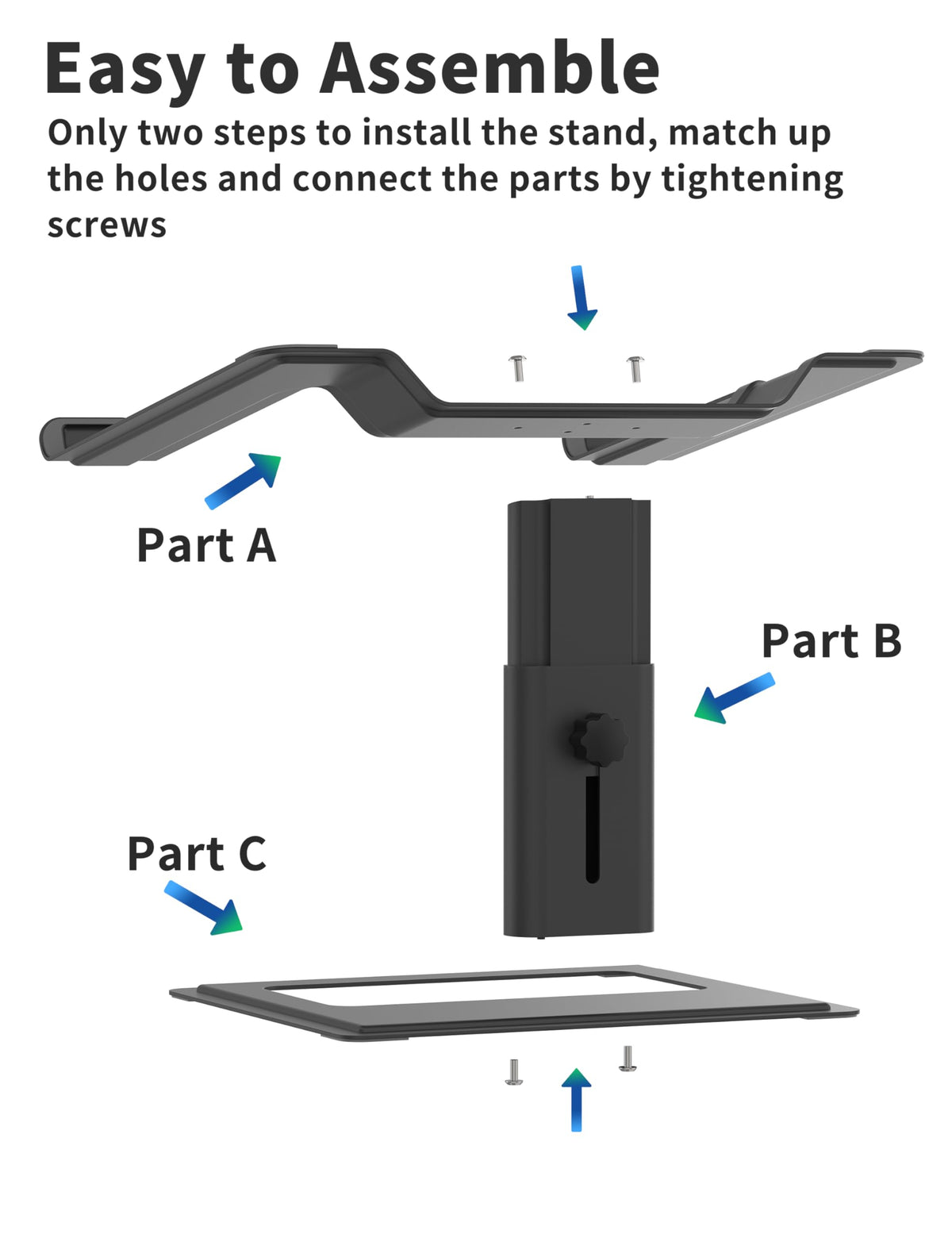 Suit For Laptops 10 To 17.3 Inches - The New Generation Laptop Stand Compatible With All Notebook Computers 10-17.3 Inches. Durable Aluminum Design Ensures Solid Stability To Hold Laptop Up To 20Lbs. | Height Adjustable - You Can Adjust The Laptop Riser To Higher Or Lower Depending On Your Needs. It Keeps Your Laptop Up High So That You Can Save More Desktop Space For Your Keyboard, Mouse, Files And Other Office Supplies. | Ergonomic Design - The Laptop Holder Elevates Your Computer Notebook Screen To Level With Your Eye Sight, Which Prevents You From Hunching Over The Screen, Reducing Neck And Shoulder Pain. | Cooling Laptop Better - Aluminum Alloy Material Helps Heat Dissipating Easily. Moreover, It Only Has Two Sturdy Hands Holds The Laptop But Not A Flat Surface So That It Can Provides More Air Flow To Cool Down Your Devices. | Protective And Easy Installation - The Silicone Pads On The Surface Keep Your Laptop Stay In Place And Protect Your Device From Scratches. Btw, It Just Need Two Steps That You Can Install The Stand, Match Up The Holes And Connect The Parts By Tightening Screws.