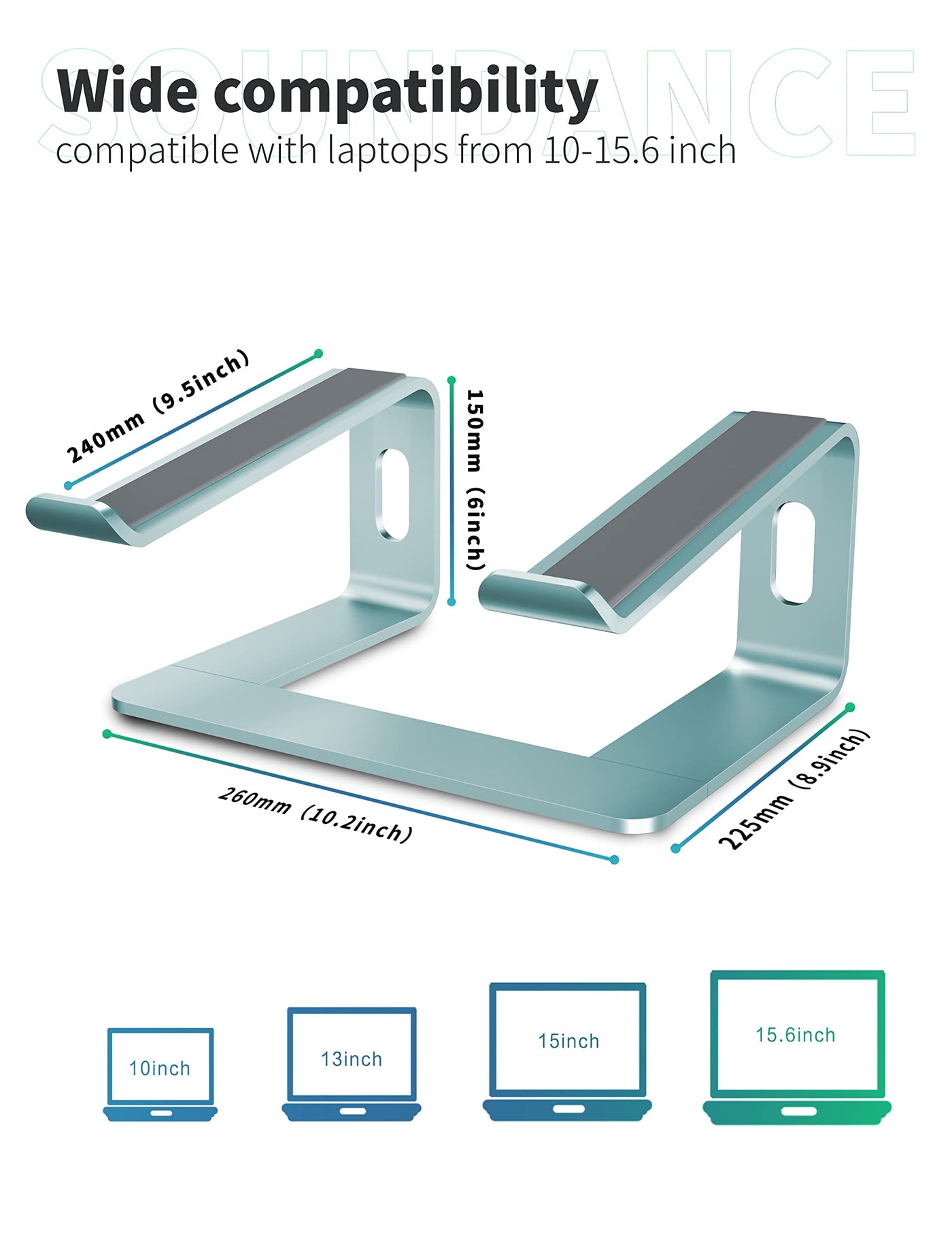 Soundance Laptop Stand, Aluminum Computer Riser, Ergonomic Laptops Elevator For Desk, Metal Holder Compatible With 10 To 15.6 Inches Notebook Computer, Aquamarine