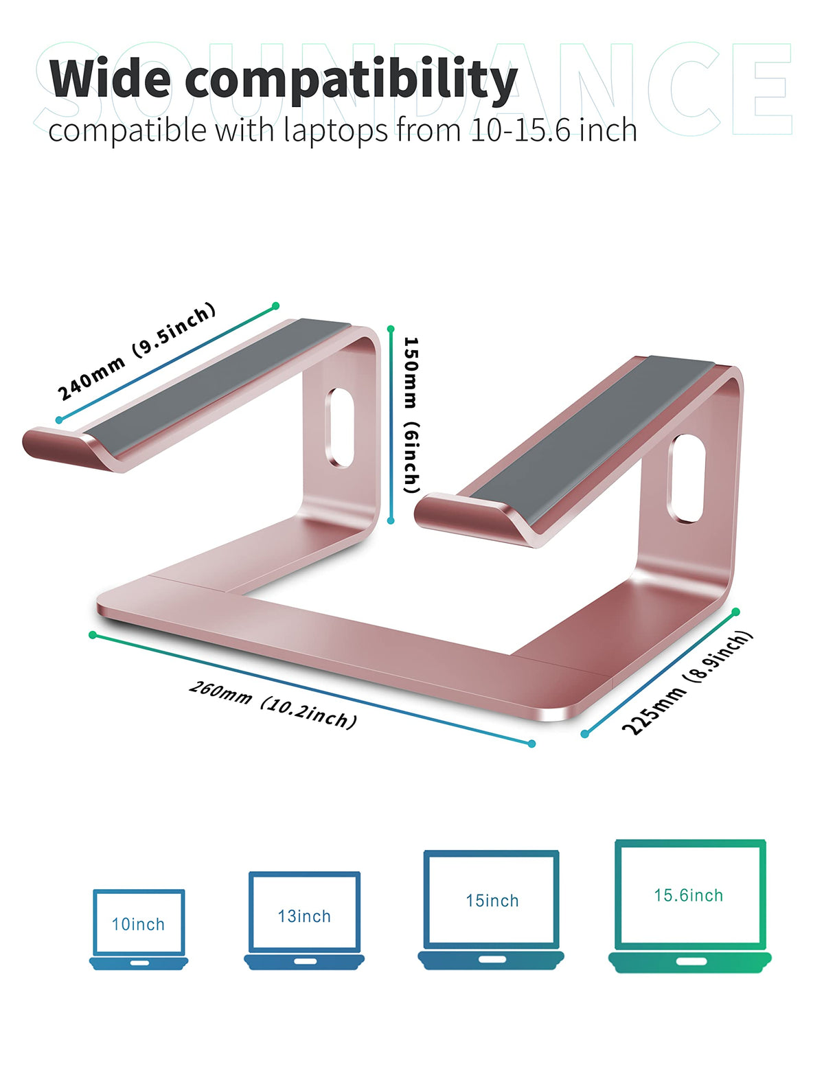 Soundance Laptop Stand, Aluminum Computer Riser, Ergonomic Laptops Elevator For Desk, Metal Holder Compatible With 10 To 15.6 Inches Notebook Computer, Gold Pink