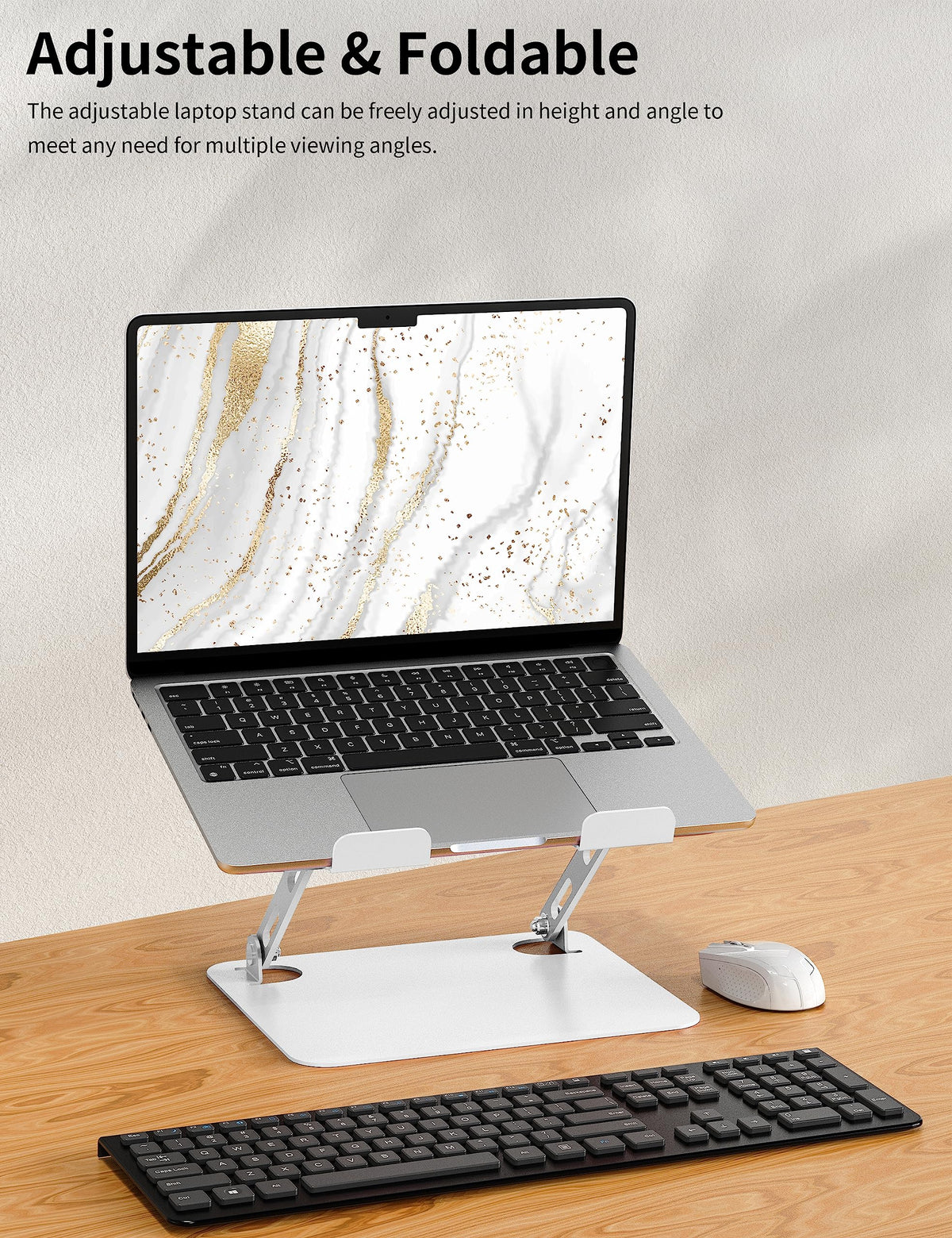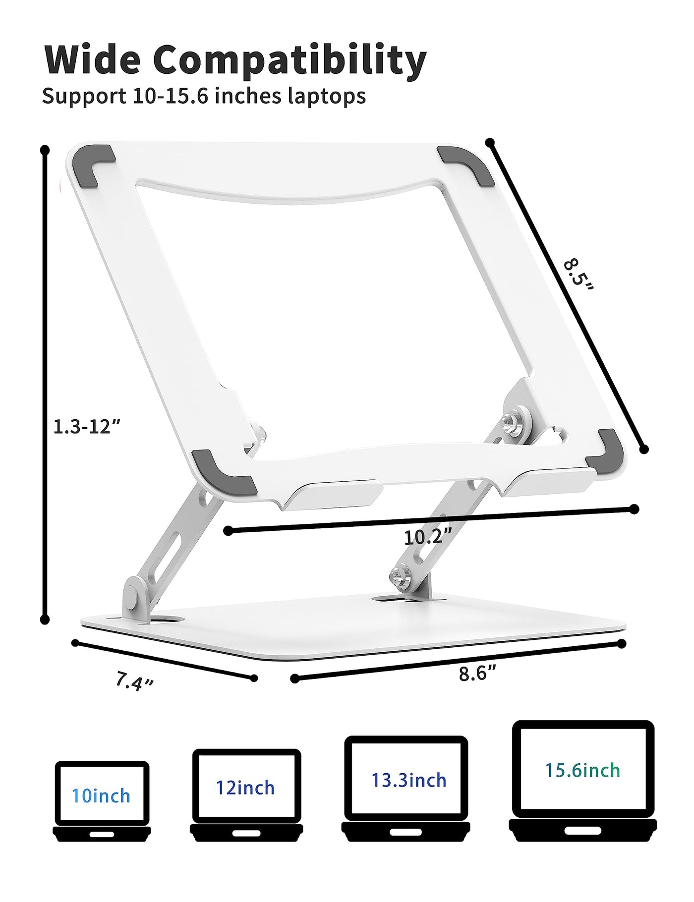 Soundance Laptop Stand For Desk, Portable Adjustable Laptop Riser, Ergonomic Design Computer Holder, Metal Laptop Mount Elevator Compatible With 10 To 15.6 Inches Pc Computer, White