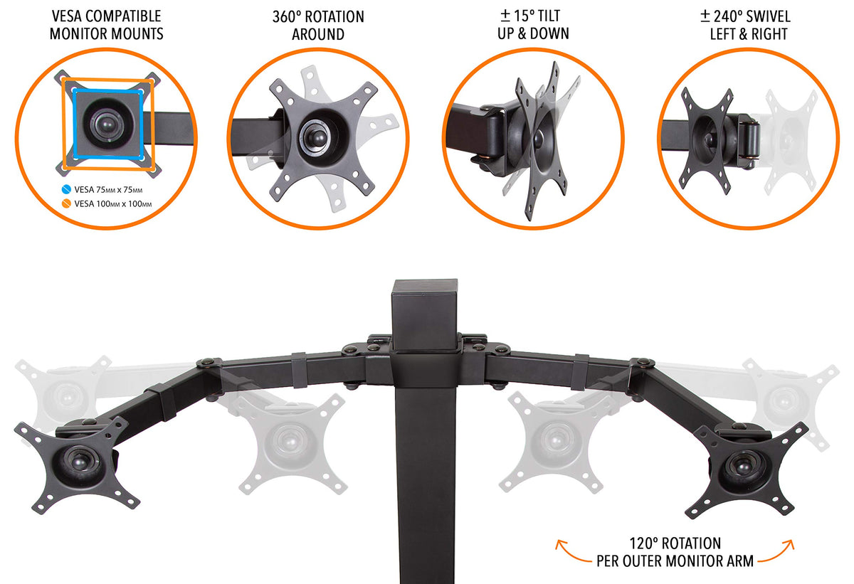Techtonic Electric 2 Arm Monitor Mount Standing Desk Take Your Workspace To The Next Level With The Techtonic Electric Standing Desk Converter � The Perfect Ergonomic Solution To Elevate Your Workday. Tired Of The Pain & Stiffness That Comes From Sitting All Day? Achieving Your Perfect Posture Is Easy With The Height Adjustable Desk Designed To Keep Your Screens At Eye Level And Your Spine Aligned. With The Virtuallysilent Motor, You Can Raise Your Techtonic With The Push Of A Button! This Durable Monitor Mount Desk Supports 2 Screens At Once - Up To 24� Each - While Tilting Vesa Plates Allow For Easy & Secure Installation. With 2 Spacious Desktop Surfaces, & A Compact Footprint, Your New Desk Converter Is Designed To Fit Wherever You Work! Features We Love: Supports 2 Monitors Sleek And Ergonomic Design Tilting Vesa Monitor Mounts Sturdy Base With Leveling Feet Convenient Cable Management Quiet Electric Height Adjustments Desk Specifications: Upper Shelf Height: 5' - 22' Upper Shelf Dimensions: 33' X 14' Lower Shelf Height: 1' - 17.5' Lower Shelf Dimensions: 34' X 18' Footprint: 31.24' X 20' Supported Screen Size: 13' - 24' Weight Limit: 55 Lbs. Total Weight: 70 Lbs. Vesa Monitor Mount Specifications: Vesa Compatible: 75X75, 100X100 Includes 3 Vesa Compatible Monitor Mounts Tilt: +15�, - 15� Spin: 360� Swivel: 240� Weight Limit: 22.5 Lbs. Per Vesa Mount