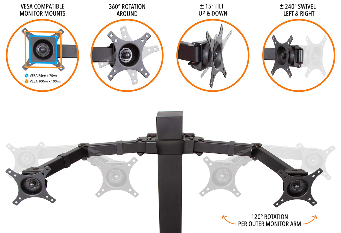 Q: Is the Techtonic desk converter compatible with VESA mount monitors?A: Yes, the Techtonic desk converter includes three VESA compatible monitor mounts that support VESA patterns of 75x75 and 100x100. This allows for easy and secure installation of your monitors.