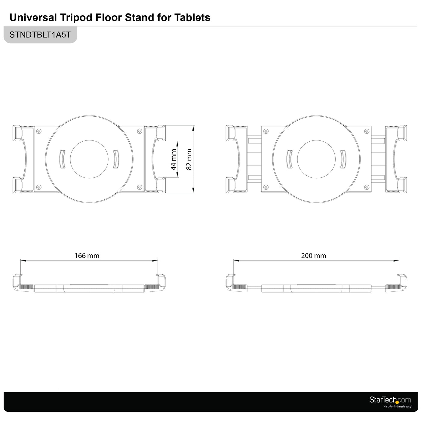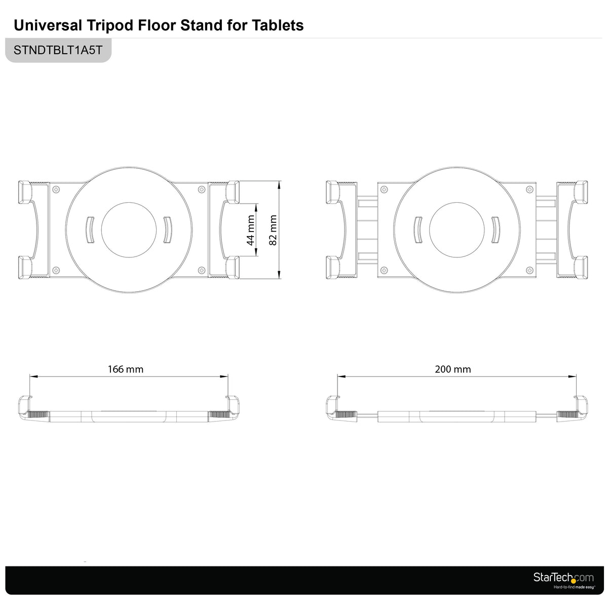 This Adjustable Tablet Tripod Stand Is Perfect For Delivering Presentations. The Stand Fits Tablets Ranging In Size From 6.5 To 7.8 In Width And Up To 0.45 In Thickness. Use It With Your Apple Ipad Or Other Compatible Tablet.This Taa Compliant Product Adheres To The Requirements Of The Us Federal Trade Agreements Act (Taa), Allowing Government Gsa Schedule Purchases.Perfect For Presentationsthe Tablet Stand Lets You Use Your Tablet To Deliver Powerful Presentations, While You Stay Focused On Your Audience And The Content Youre Delivering. You Can Use Your Tablet As A Visual Cue Or Teleprompter, Without Having To Hold It Or Repeatedly Look Down At It While Youre Speaking.Adjustable Height And Viewing Angleuse The Tripod While Youre Sitting Or Standing. The Height Is Easy To Adjust - From 29.3 To 62 (74.5 Cm To 157.5 Cm). You Can Also Rotate The Tablet 360 Degrees To Change From Landscape To Portrait Position And Tilt The Screen To Your Preferred Viewing Angle. Plus, The Tablet Holder Is Detachable, With Quick-Swap Attachments That Let You Remove The Tablet From The Stand And Place It Back In At Any Time.Portable Tablet Tripod Standthe Tripod Folds Up Nicely And Comes In A Handy Carrying Bag For Portability. Setup Is Easy - Just Extend The Collapsible Tripod Stand To The Height You Need, Lock It In Place, And Mount Your Tablet.Other Applicationsshoot Videos Or Photos With No Camera Shake Give Lectures Portable Displays Tradeshow Kioskstndtblt1A5T Is Backed By A 2-Year Startech.