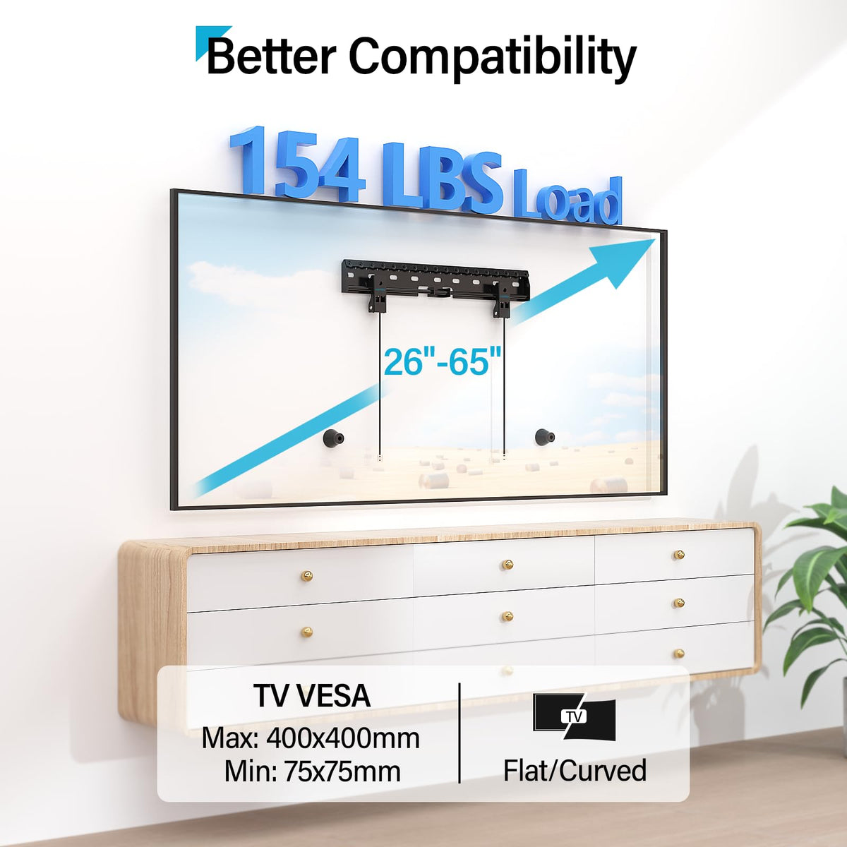 Supcline Studless Tv Wall Mount For 26 65 Inch Tv Up To 154 Lbs, No Stud Drywall Tv Mount With Max Vesa 400X400Mm, No Drill Low