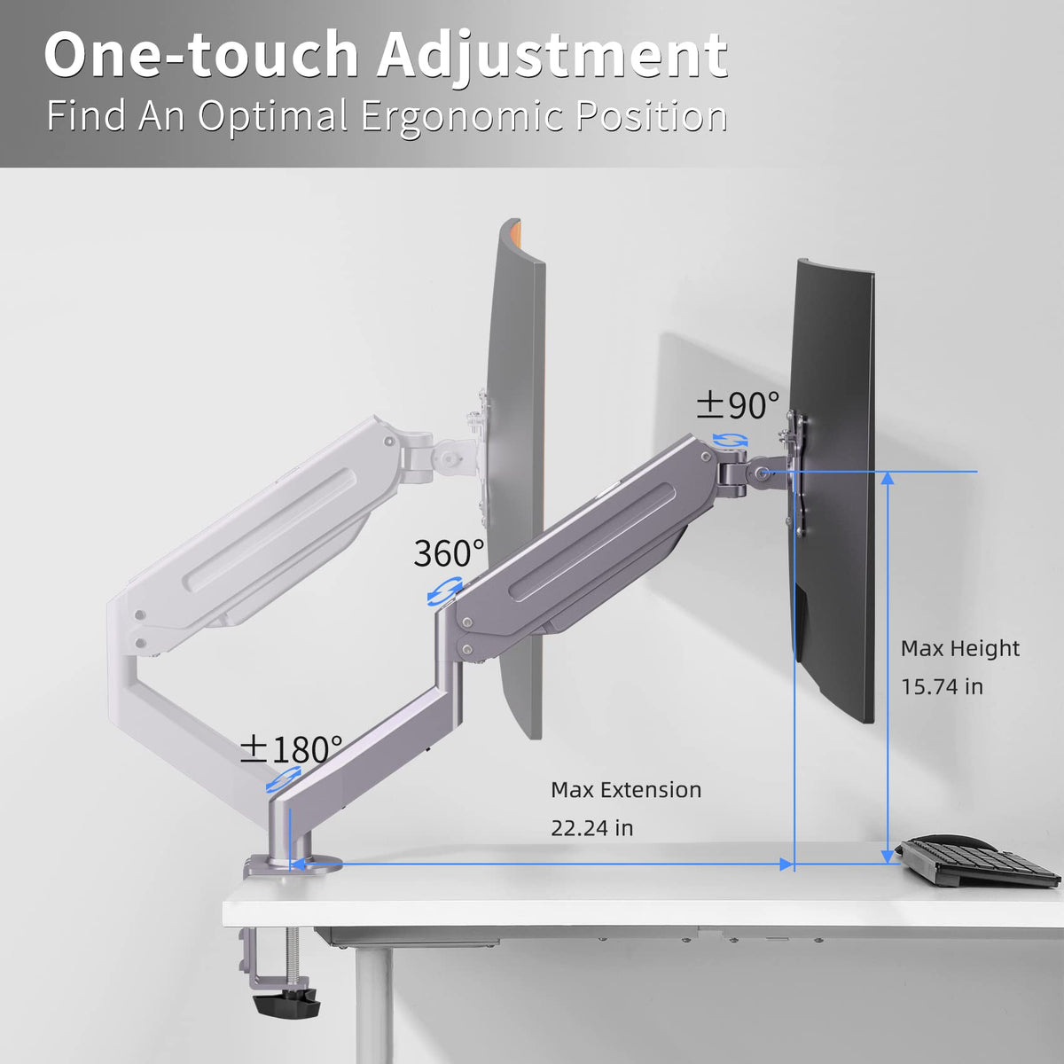 Suptek Monitor Mount Gas Spring Monitor Arm Desk Mount Fully Adjustable Fits 17 20 22 23 24 26 27 Inch Monitors Weight Capacity Up To 13.2 Lbs (Silver)