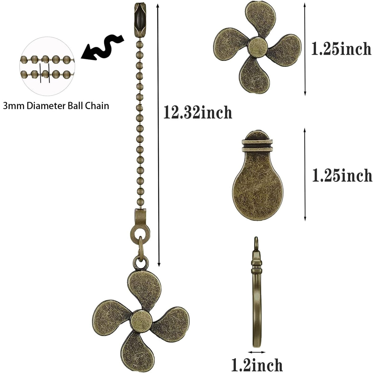 Sur Ciel 4Pcs Ceiling Fan Pull Chain, Ceiling Fan Pulls Decorative, Ceiling Fan Pull Chain Extender, Light Pull Chain Extension