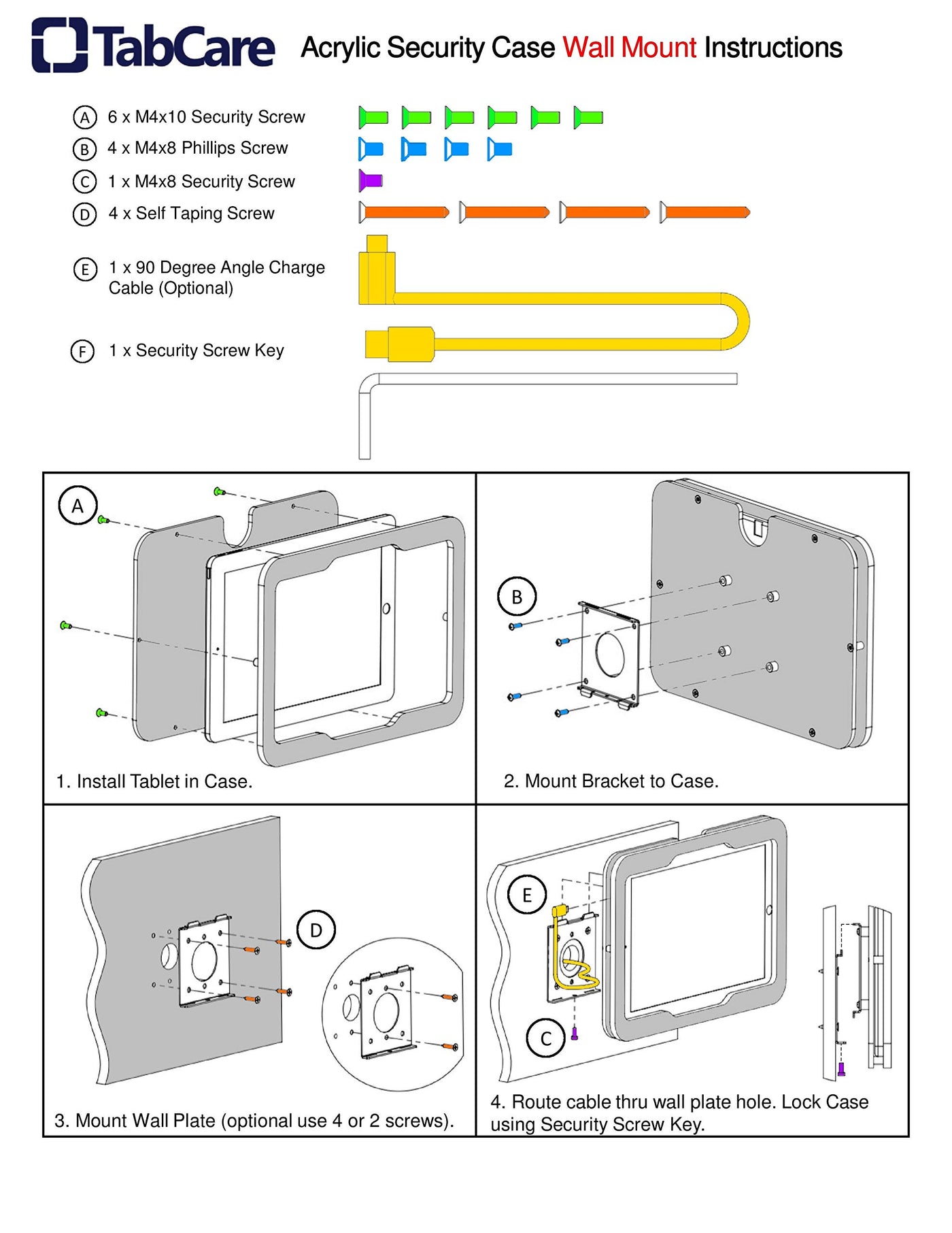 Tabcare Anti Theft Acrylic Vesa Enclosure For Apple Ipad Mini 1/2/3 With Free Wall Mount Kit & 90 Degree Angle Charge Cable (Ipad Mini 1/2/3 8', Clear)
