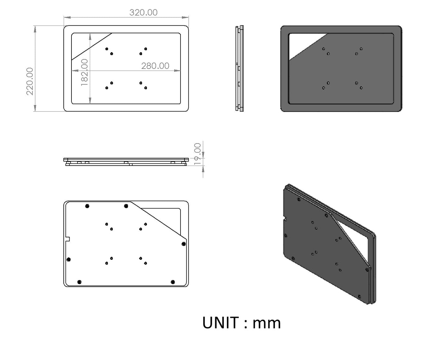 * Vesa Kit Dimension : 220Mm (Height) X 20Mm (Depth) X 320Mm (Width)