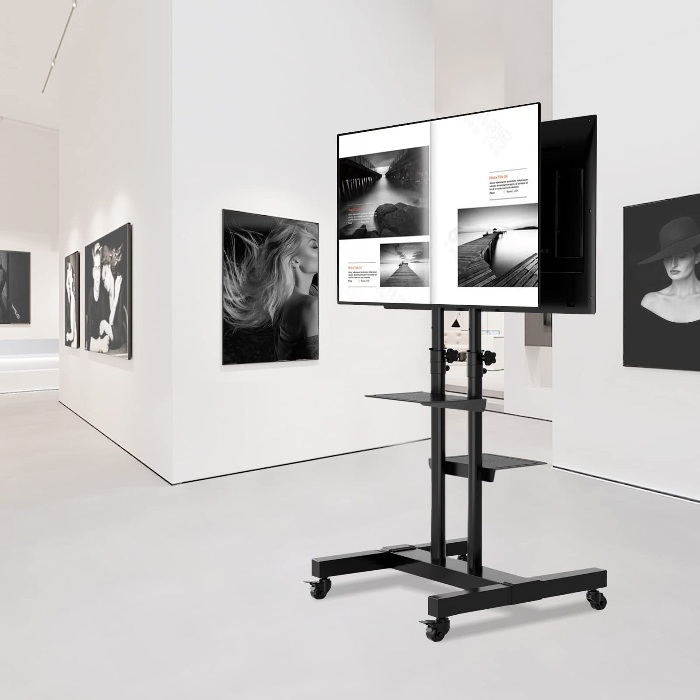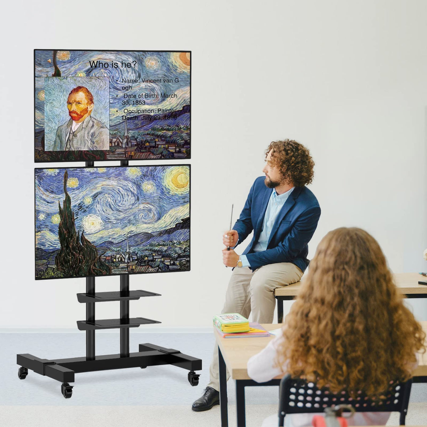 Tavr Dual Mobile Tv Stand Rolling Tv Cart Floor Stand With 2 Tv Brackets On Locking Wheel Height Adjustable Shelf For 32 70 Inch