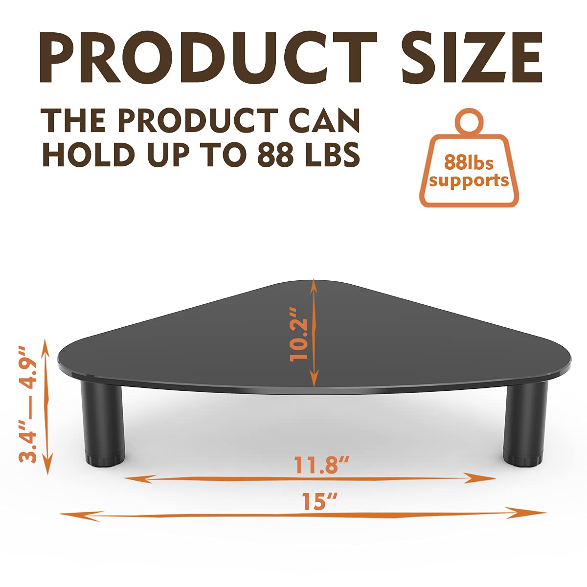 Tempered Glass Computer Monitor Riser/Triangle Save Space Desktop Corner Stand For Computer Monitor & Laptop Black Hd01B 003