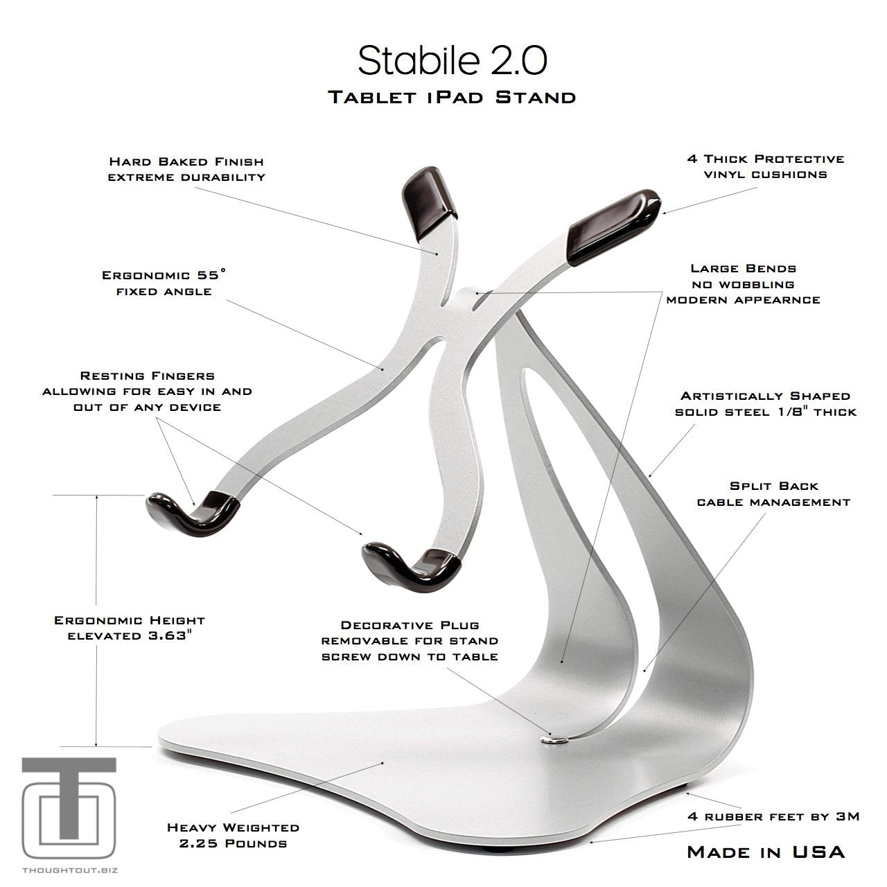 Thought Out Stabile 2.0 Steel Stand White - Made In Usa - Compatible With Apple Ipad