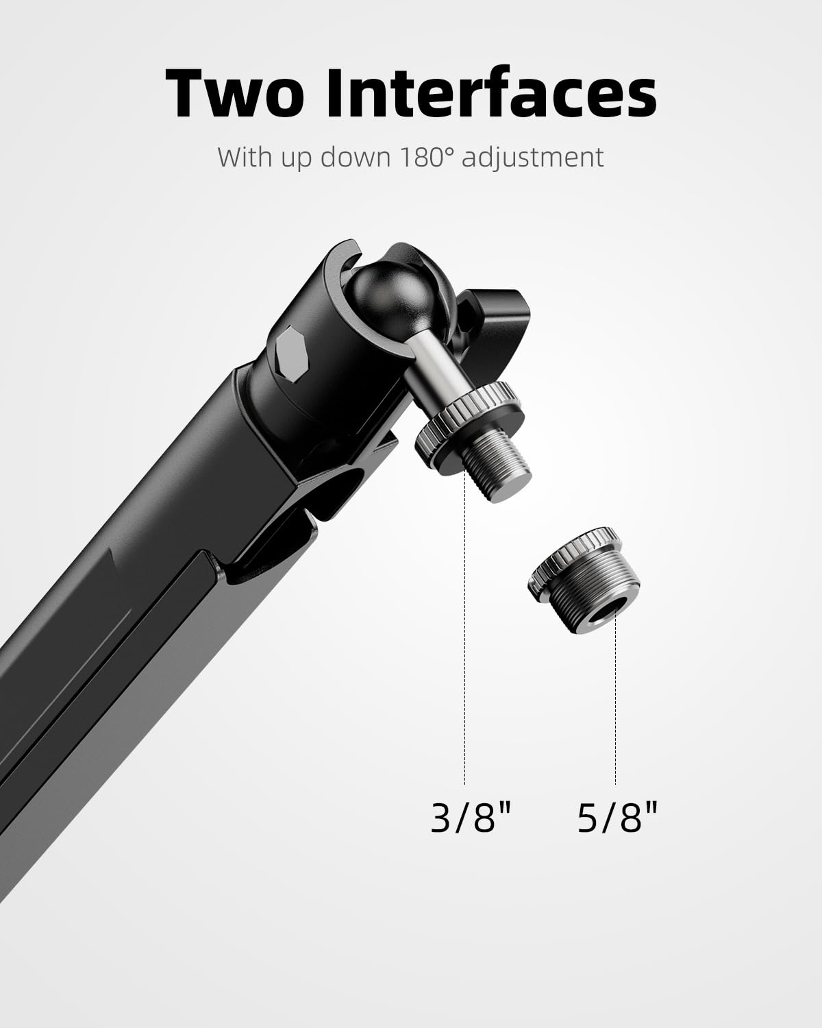 Transform Your Recording Setup With This Professional-Grade Microphone Boom Arm Stand. Built With Durability In Mind, This All-Metal Construction Can Support Microphones Weighing Up To 3 Lb, Making It Perfect For Podcasting, Streaming, Or Home Studio Use. The Desk Mount Clamp Provides Stable, Secure Attachment To Your Workspace, While The Adjustable Boom Arm Allows For Precise Positioning To Achieve Optimal Recording Angles. Compatible With Most Microphones Thanks To Its Versatile 3/8 And 5/8 Threading Interfaces, This Todi Mic Stand Combines Functionality With Flexibility. The Heavy-Duty Design Ensures Smooth Movement And Reliable Performance, While Maintaining Steady Positioning During Use. Whether Youre A Content Creator, Musician, Or Professional Broadcaster, This Mic Stand Delivers The Stability And Adjustability Needed For Quality Audio Production.