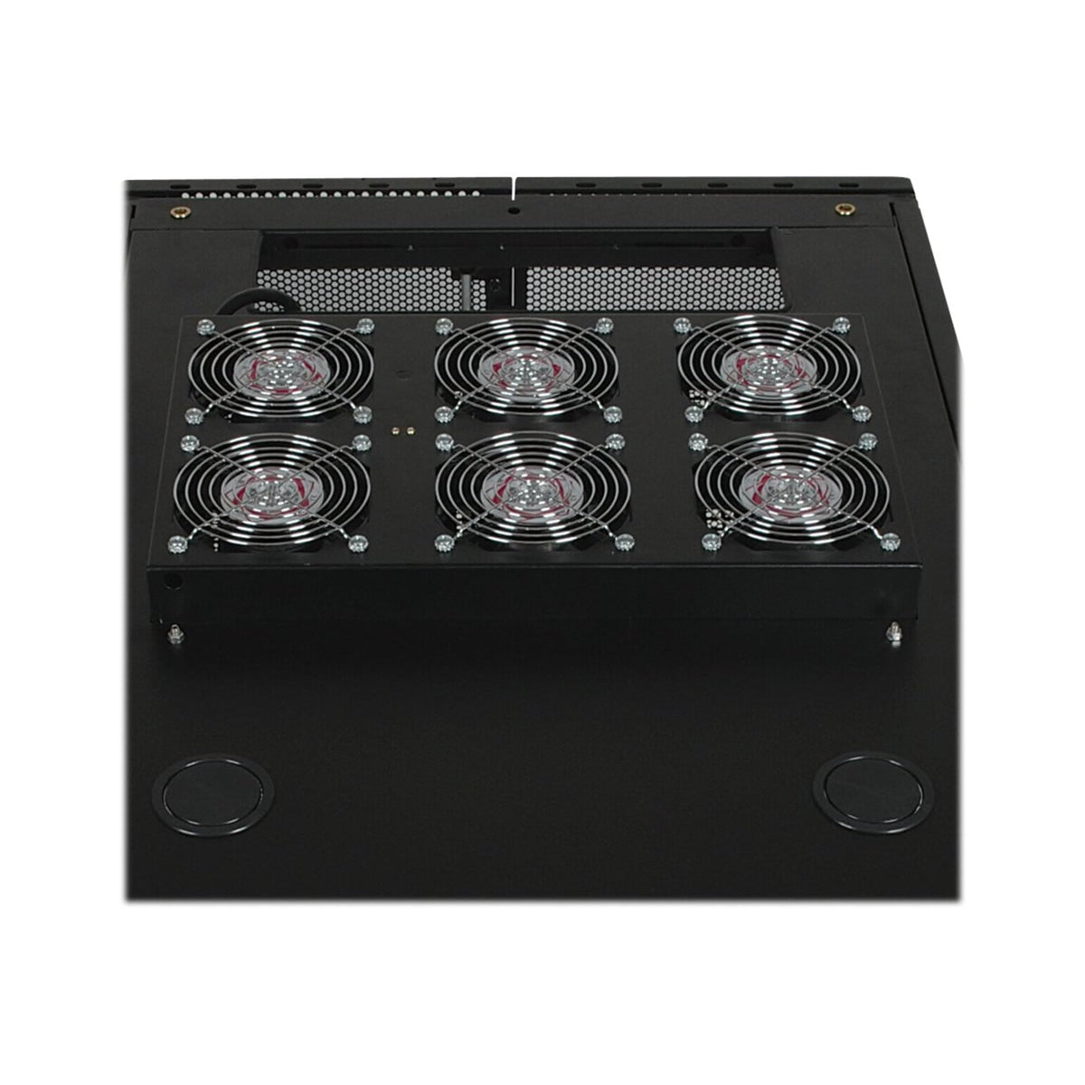 Q: How does the SRXFANROOF improve airflow in my server cabinet?A: The SRXFANROOF improves airflow by utilizing its (6) powerful fans to actively push air through the cabinet, thus preventing overheating and ensuring optimal performance of your servers and equipment.
