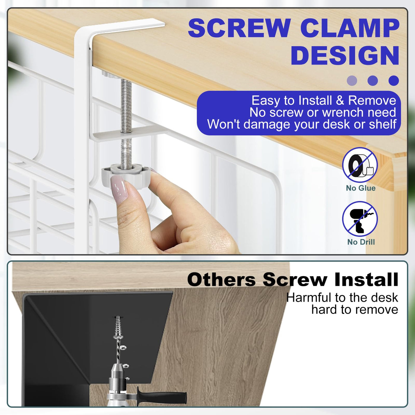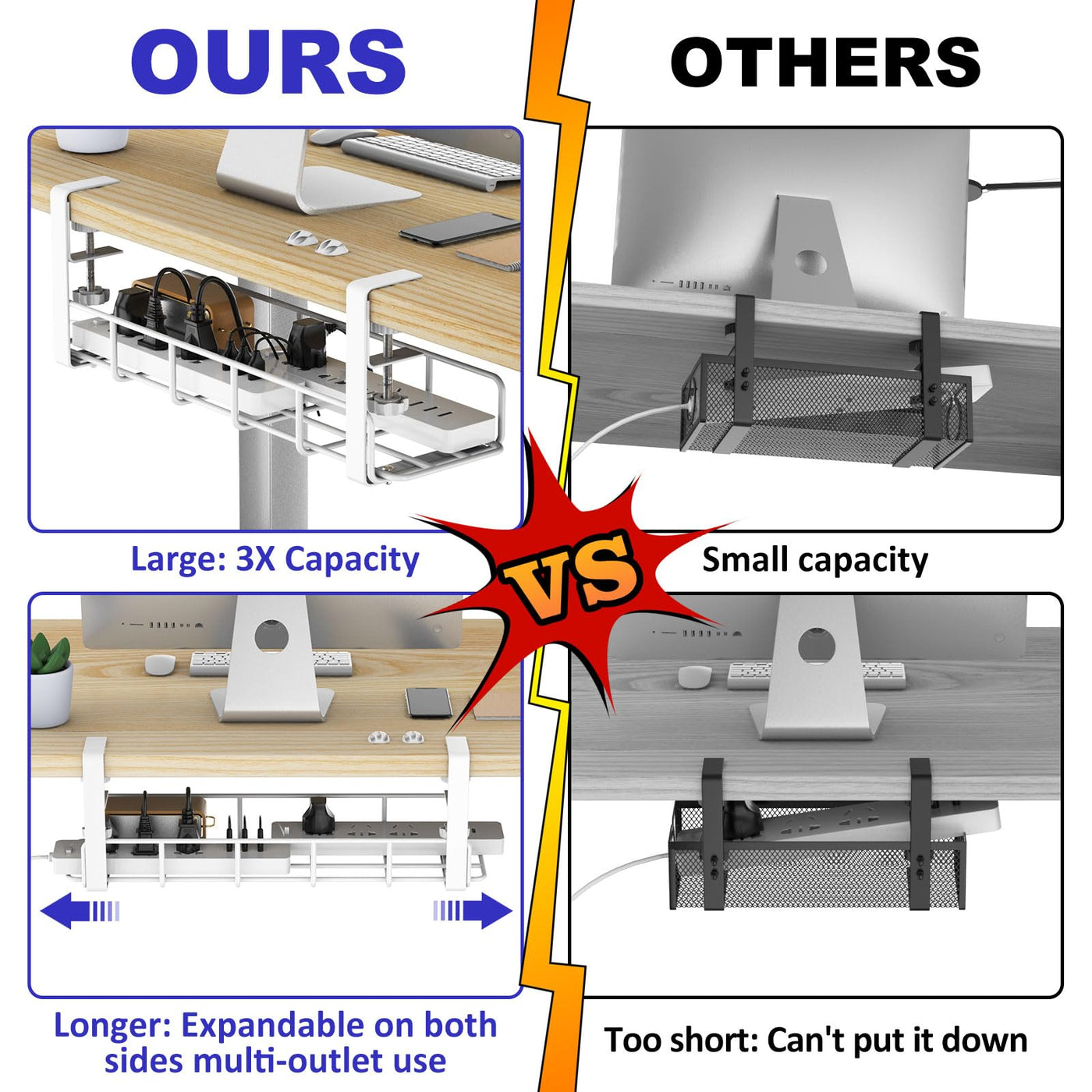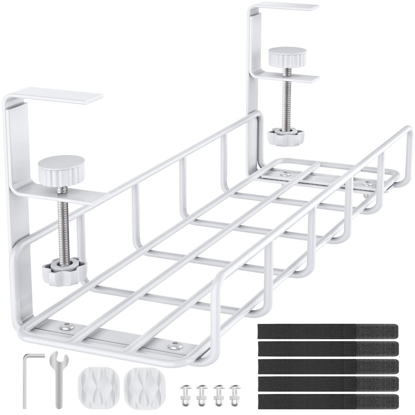 Under Desk Cable Management Tray, 15.7'' White No Drill Steel Desk Cable Organizers, Wire Management Tray Cable Management Rack, Desk Cable Tray With Wire Organizer White(1Pack