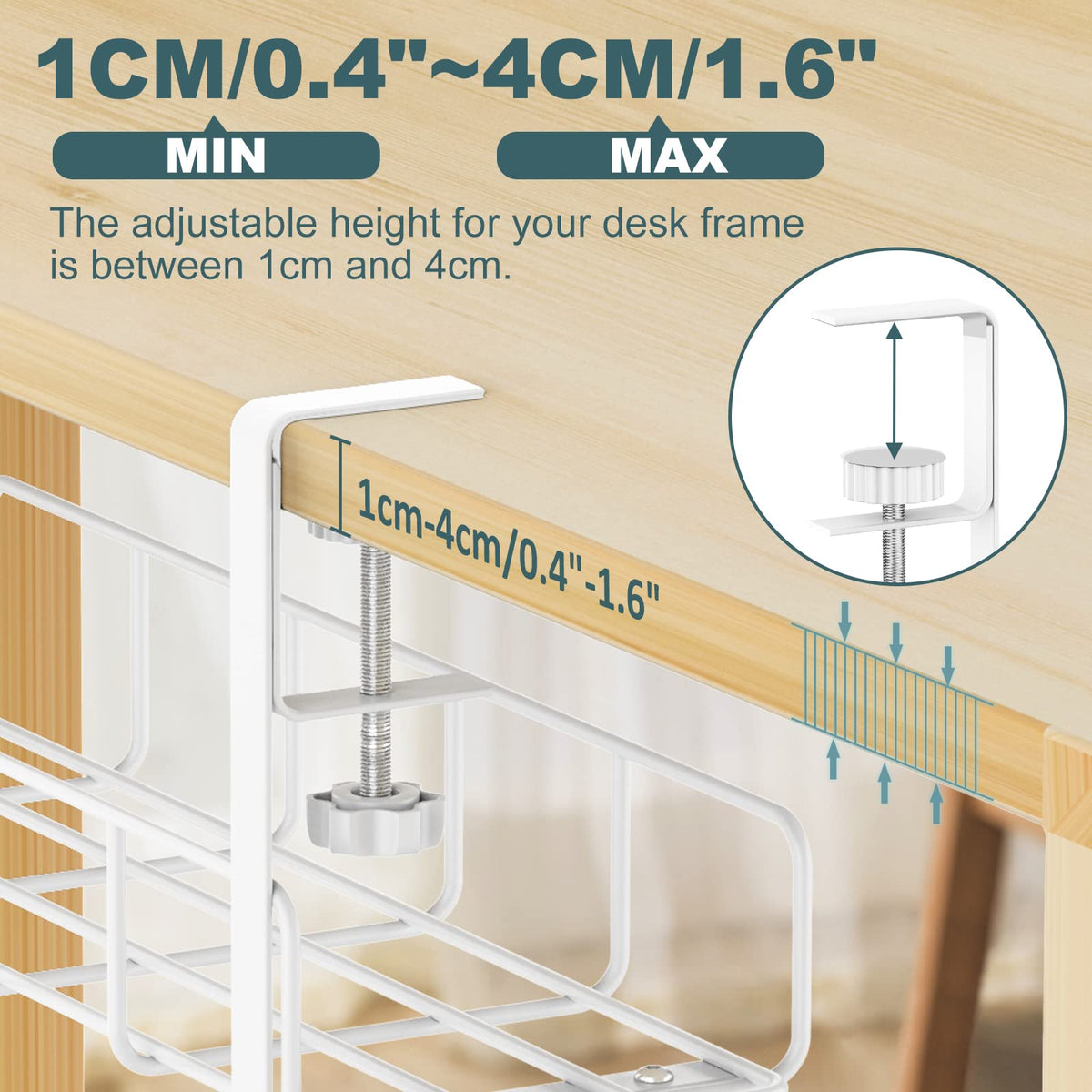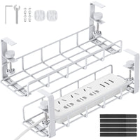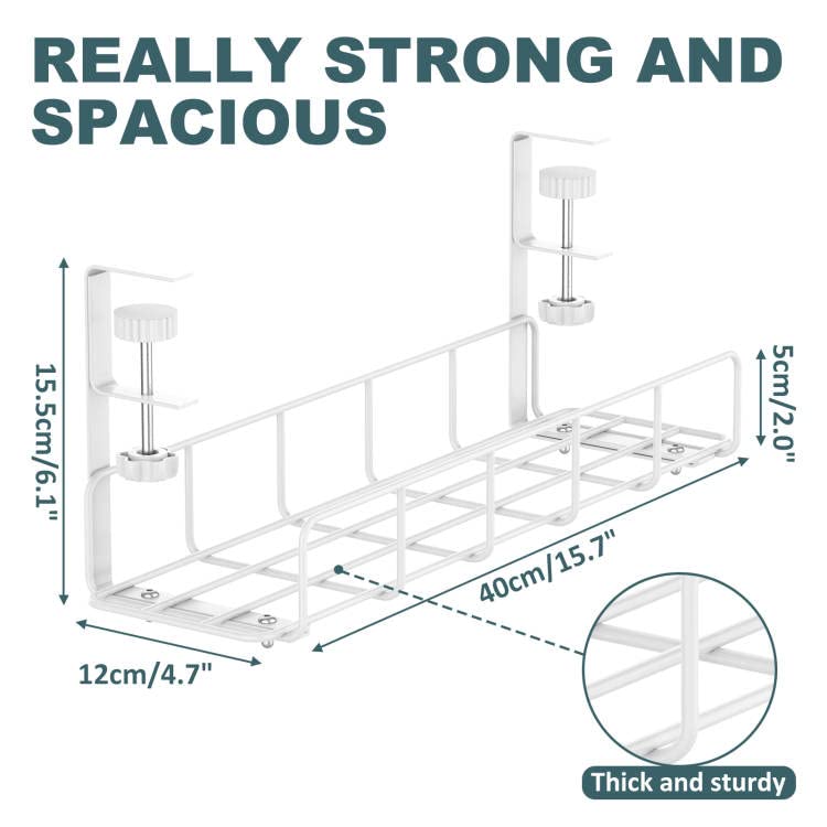 Under Desk Cable Management Tray, 15.7'' White No Drill Steel Desk Cable Organizers, Wire Management Tray Cable Management Rack, Desk Cable Tray With Wire Organizer White(2 Pack)