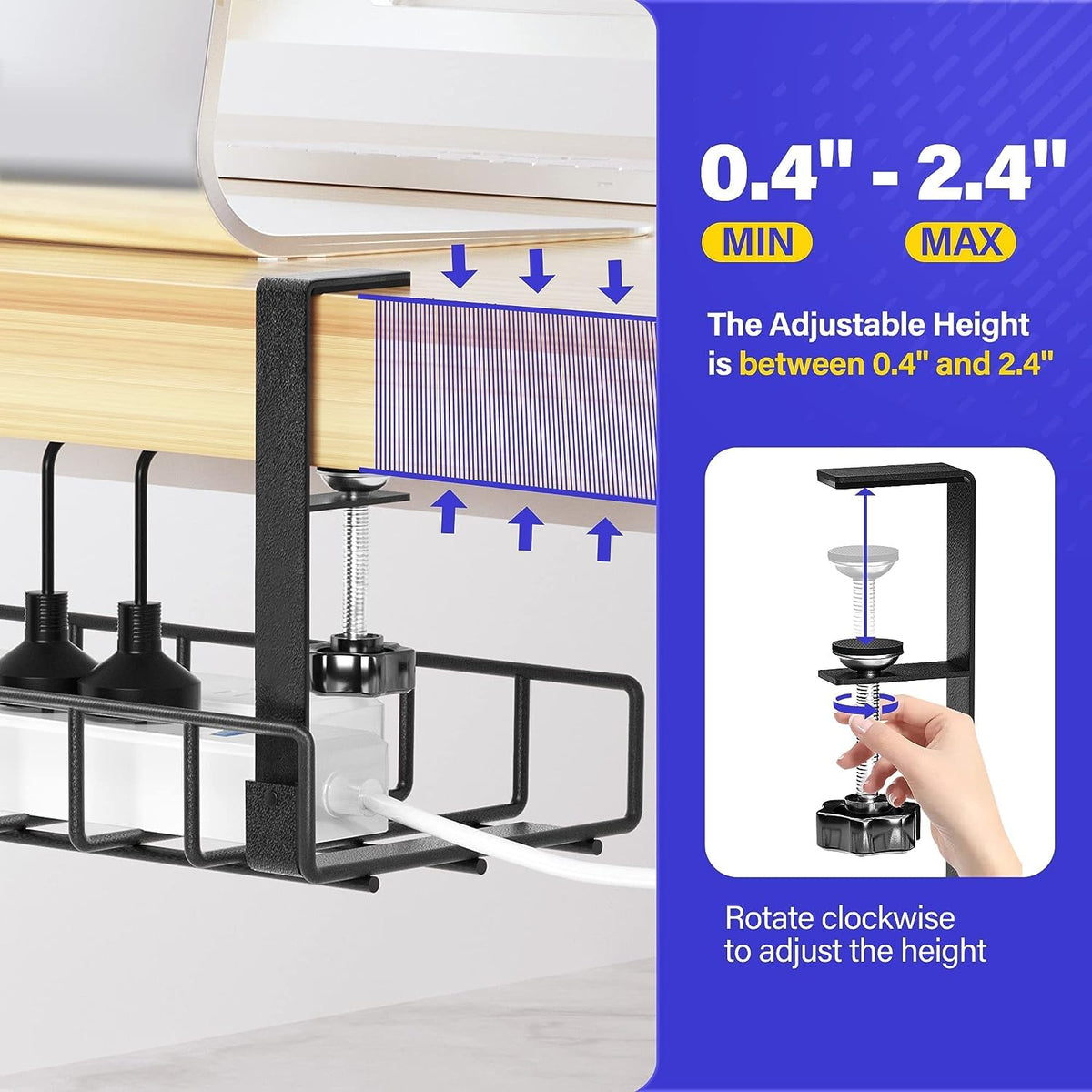 Under Desk Cable Management No Drill, Xpatee 16'' Desk Cable Management, Cable Management With Clamp For Desk Wire Management, Computer Cable Rack For Office, Home - No Damage To Desk, Black