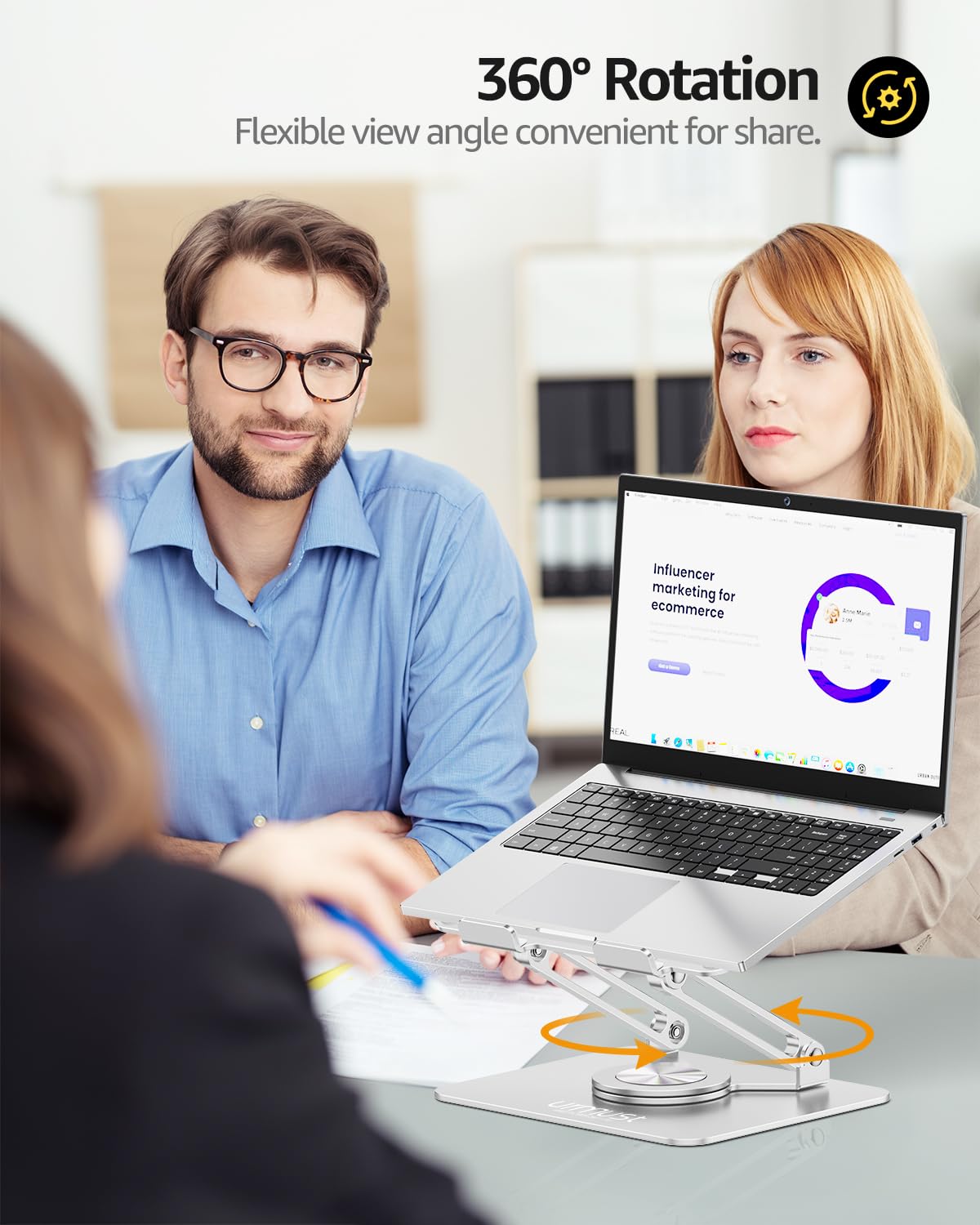 Urmust Laptop Stand For Desk With 360 Rotating Base, Computer Stand For Laptop Ergonimic Adjustable Laptop Riser For Desk Compatible With Macbook Pro/Air All Laptop Up To 16 Inches ?Anti-Slip Rubber Protector Anti-Slip Silicone Rubber Pads On The Top Prvent Your Laptop From Being Scratched And The Bottom, Keep It In A Position And Not Move.