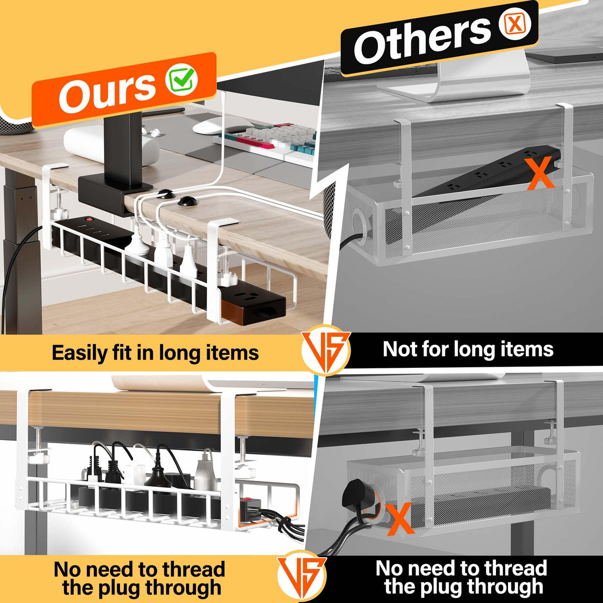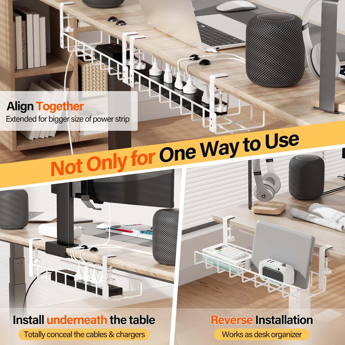 Xpatee 2 Pack Cable Management Under Desk Tray, 31.4'' No Drill Under Desk Wire Management With Upgraded Clamp, Metal Cord Organ