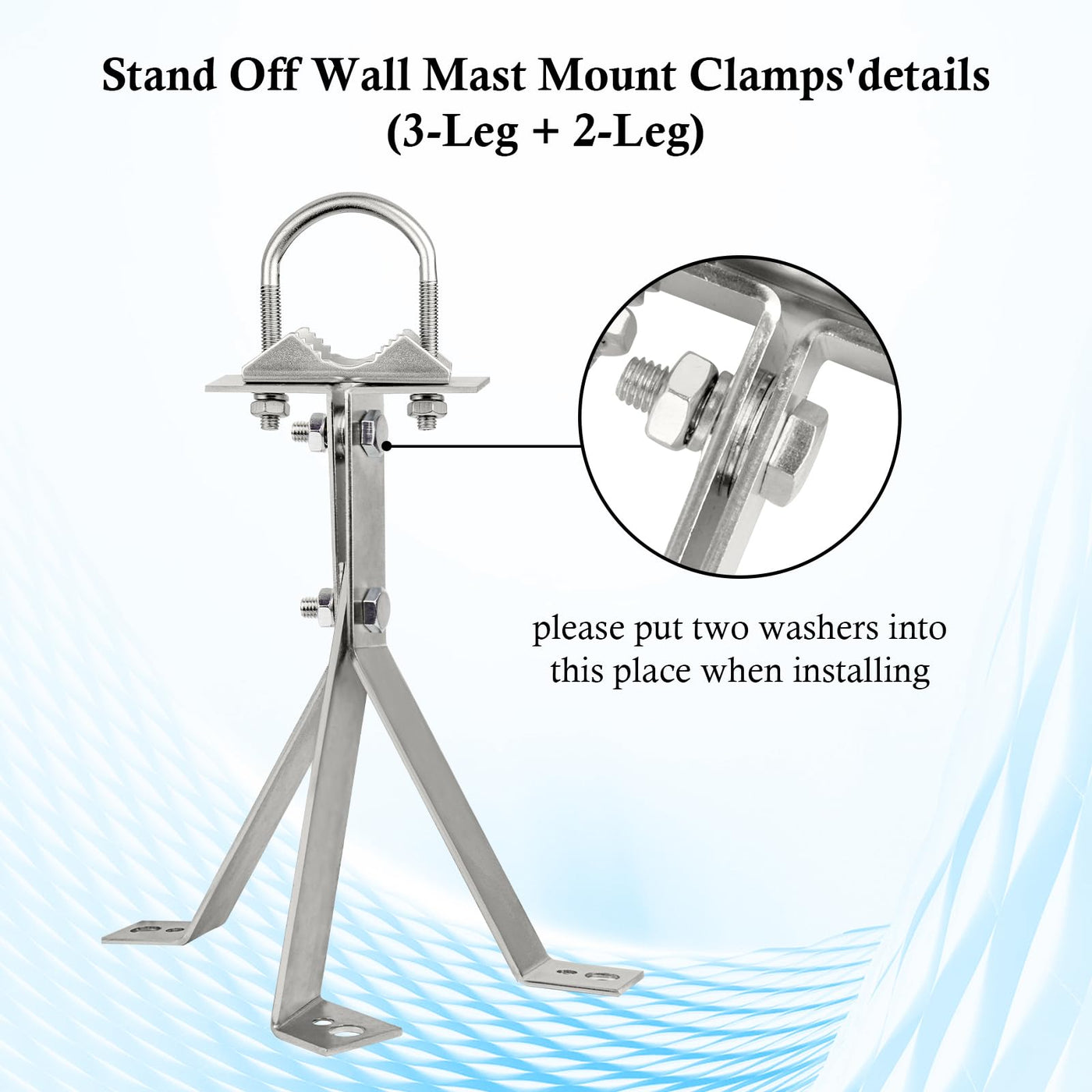 Xrds-Rf Antenna Wall Mount 8 Inch Heavy-Duty Stand Off Wall Mast Mount Windproof Antenna Mounting Bracket For Tv Antenna Mast ( 3-Leg + 2-Leg)