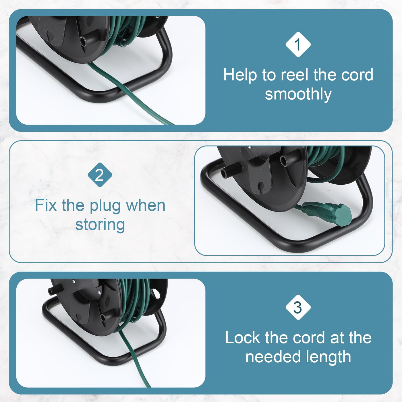 Yaocom Extension Cord Storage Reel With Metal Stand Black Cable Reel Holds Up 500 Feet Of 6 Mm Cable/Cord/Hose Heavy Duty Open R