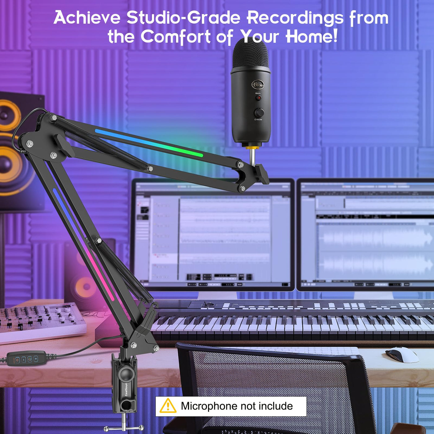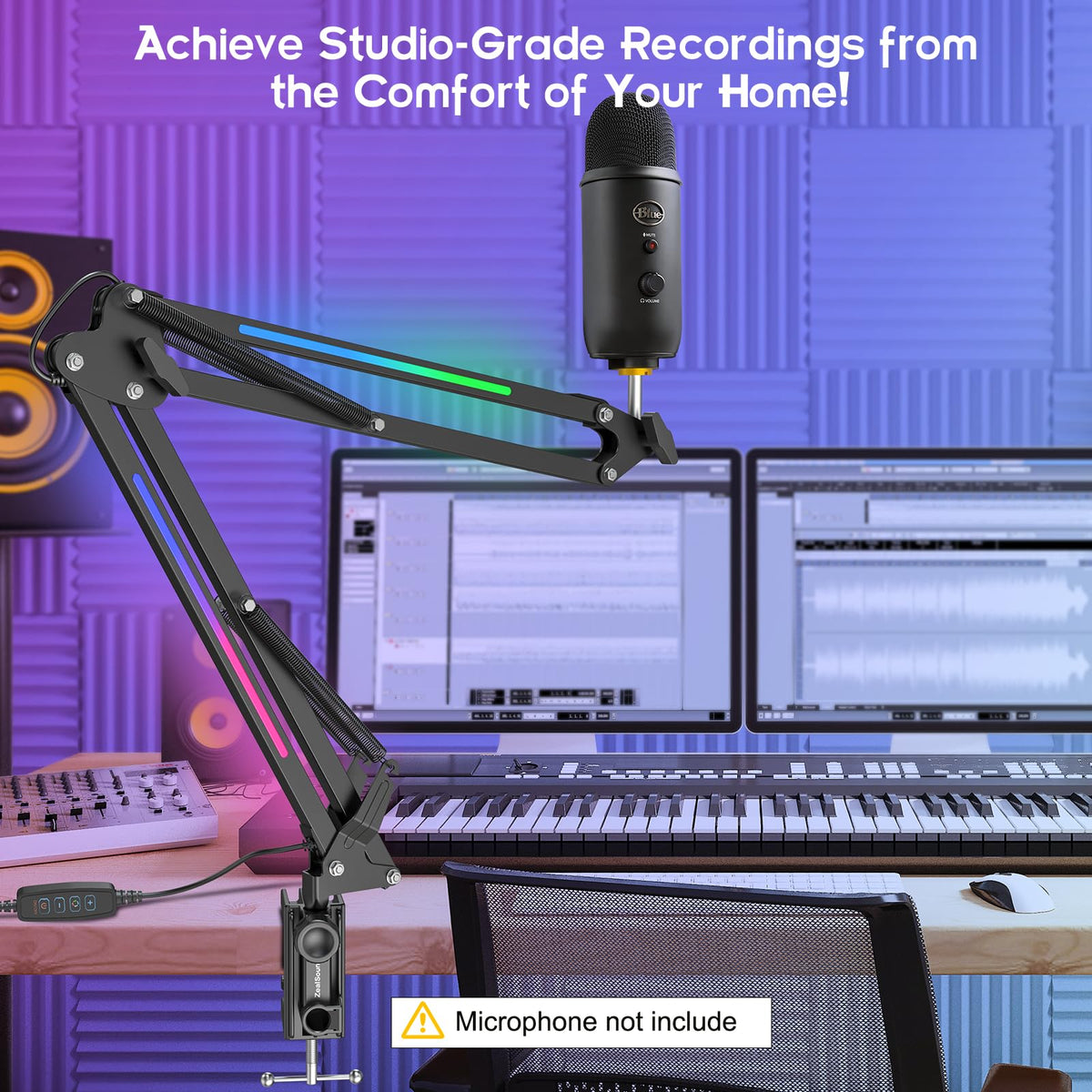 Zealsound Rgb Microphone Arm Stand,Mic Arm With Rgb Light For Quadcast/Blue Yeti/Snowball/Shure Sm7B/Rode Nt1/Elgato,Rotatable S