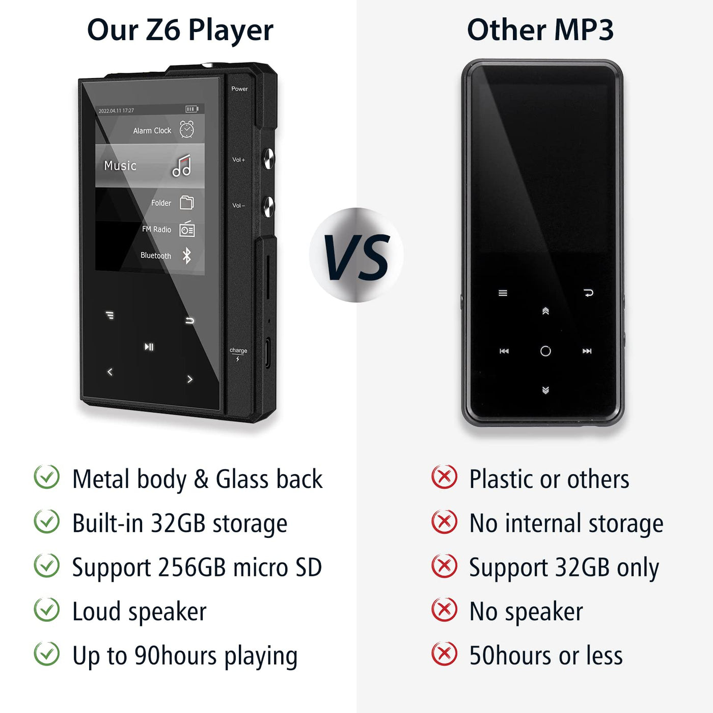 96Gb Mp3 Player With Bluetooth 5.0, Phinistec Z6 Digital Audio Player With Loud Speaker, 2.4'' Ips Super Battery Life Music Play