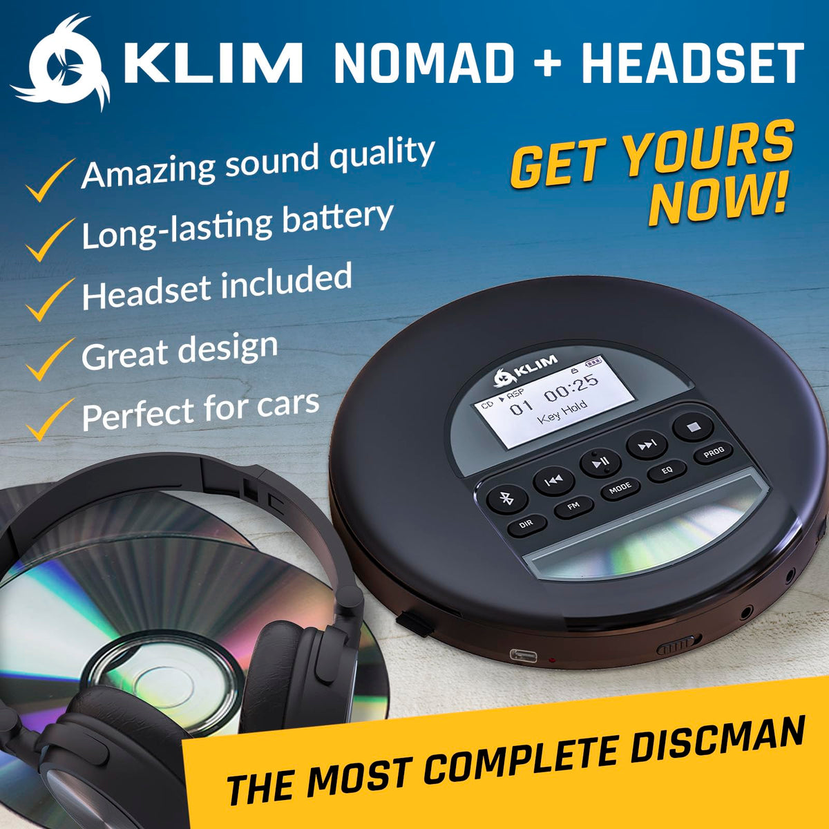 Klim Nomad With Headset New Version Portable Cd Player Walkman With Long Lasting Battery Radio Fm Compatible Mp3 Cd Play
