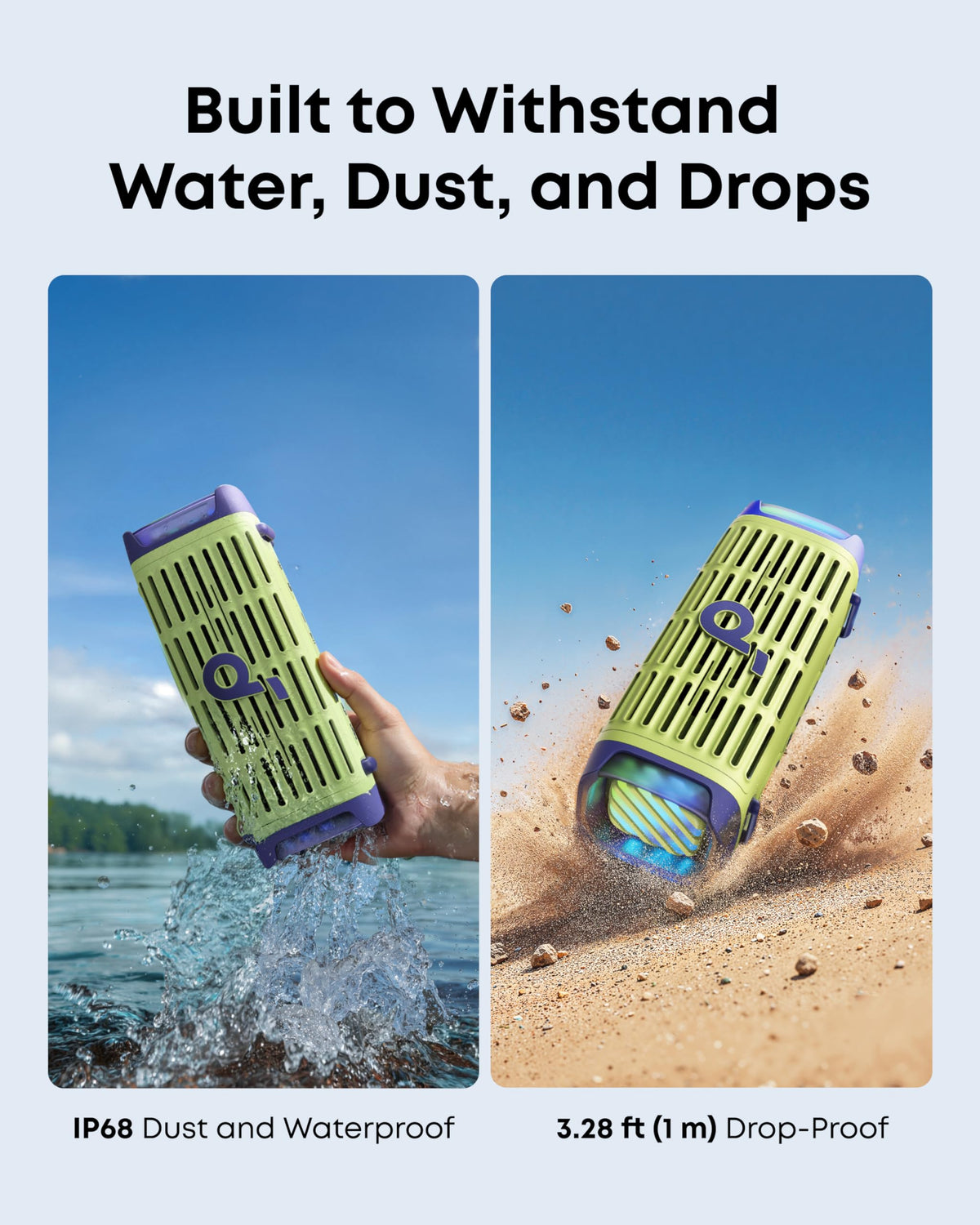 Industry-First Floating Playback: Stays Upright And Sound-Forward, Even In Waves. No Distortion, No Sinking-Just Loud, Clear Audio For Kayaking, Pool Parties, And Every Water Adventure. Ip68 Waterproof And Dustproof: Built To Survive The Elements, This Bluetooth Speaker Is Fully Waterproof And Dust-Tight. The Ultimate Outdoor Speaker. 5X Saltwater-Resistant & Ultra-Durable: Built For Extremes-5X Saltwater-Resistant Against Sea, Sweat, And Spray. Drop-Tested From 3.28 Ft (1 M). Perfect For Beach Days And Boat Rides, With No Rust Or Corrosion. Tougher Than Most Rugged Outdoor Speakers. Double The Bass With Bassup 2.0: Pushes 50W Of Powerful Sound With Bass As Deep As 56Hz. Bassup 2.0 And Dsp Tech Deliver Punchy Lows And Crisp Highs. Serious Audio Performance In A Compact Portable Speaker. Smart Features And 16H Playtime: Get 16 Hours Of Nonstop Play And Full Control Via App. Comes With Voice Amplifier, Emergency Alarm, Buzz Clean, And A Detachable Strap For Hands-Free Fun-Everything You Need In Reliable Outdoor Speakers.
