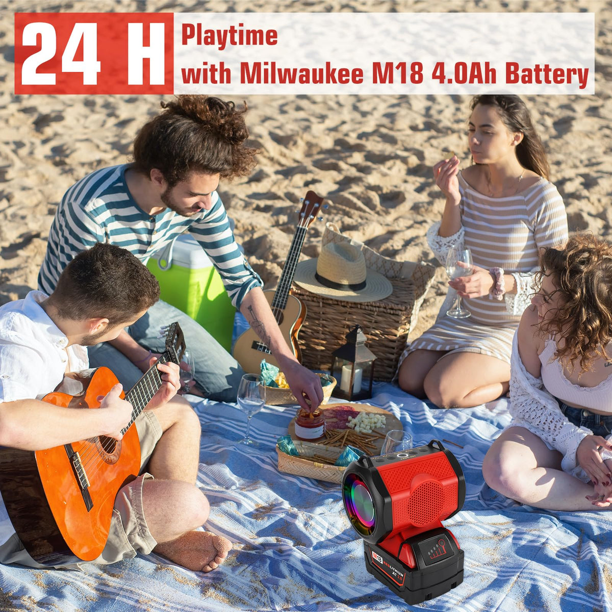 Speaker For Milwaukee M18 18V Lithium Ion Battery, Portable Speaker Wireless With Hd Sound, Tws Pairing, Bt5.3, Up To 24H Playti