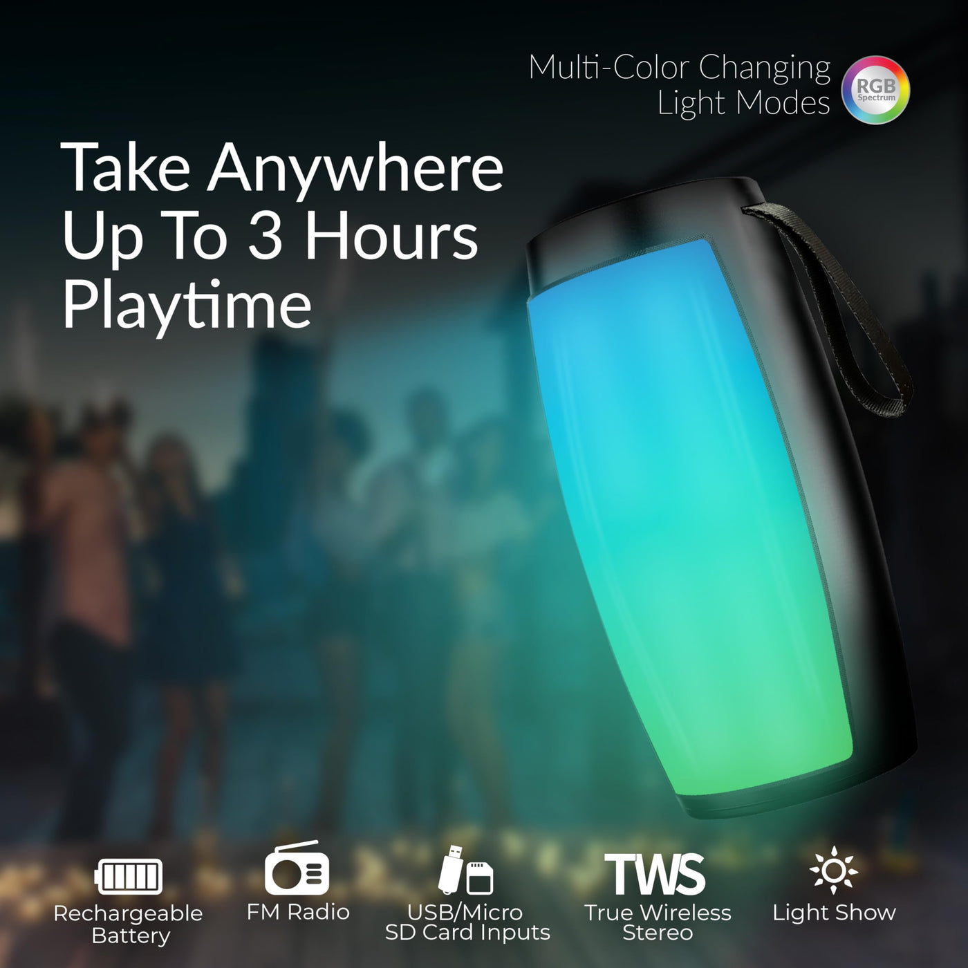 Supersonic Sc-2333Bt Portable Bluetooth Speaker With Rgb Light Panel, True Wireless Stereo, Bluetooth 5.0, Usb/Micro Sd Playback