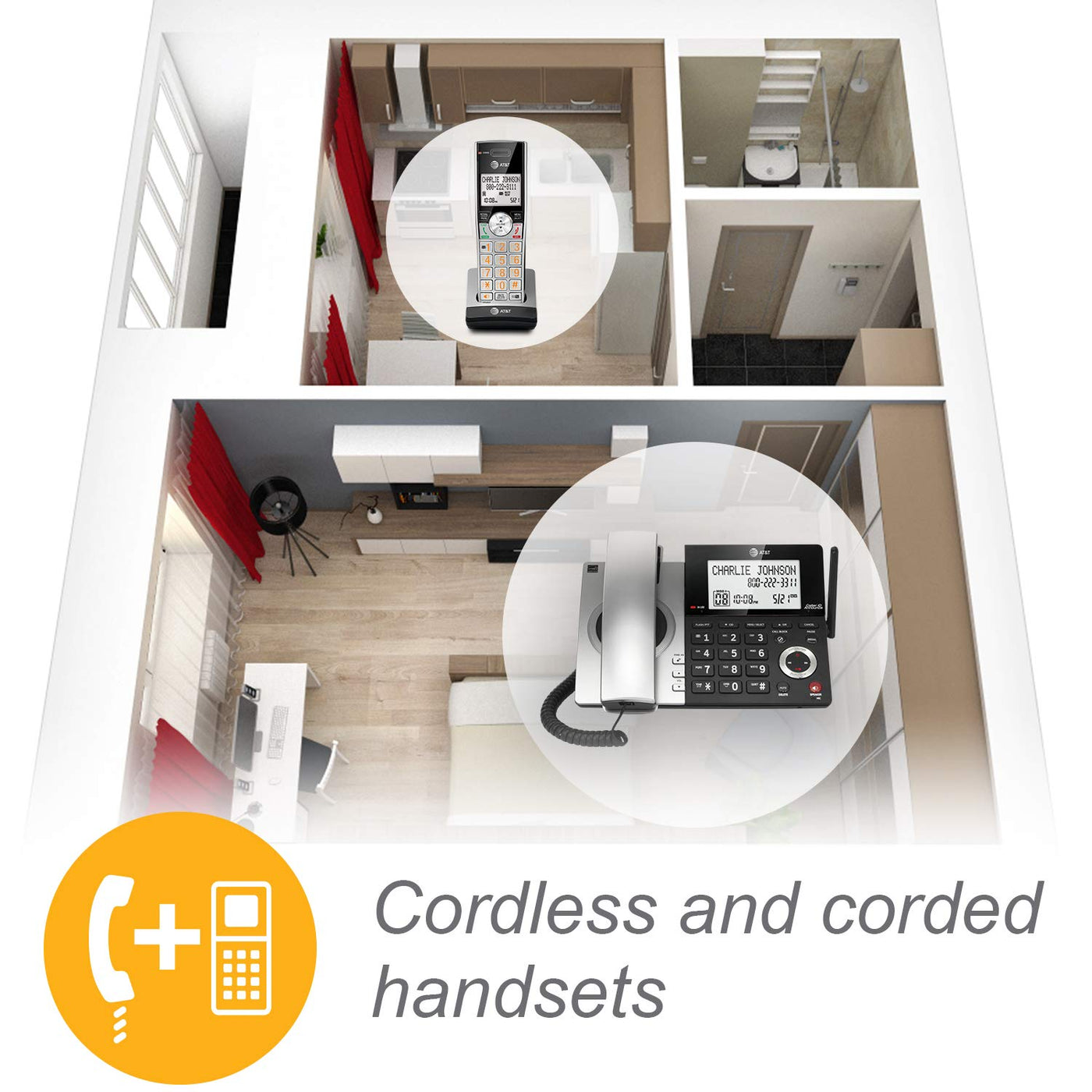 At&T Cl84107 Dect 6.0 Expandable Corded/Cordless Phone With Smart Call Blocker, Black/Silver With 1 Handset